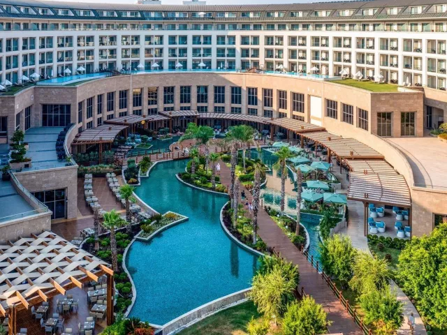 Hotel sa nachádza v stredisku Belek, v blízkosti centra Kadriye, ktoré je vzdialené 2,5 km, a centra Antalye, ktoré je vzdialené 35 km. Medzinárodné letisko v Antalyi je vzdialené 27 km. Hotel je situovaný priamo na súkromnej piesočnatej pláži a ponúka prístup k niekoľkým profesionálnym golfovým ihriskám, vrátane Kaya Palazzo Golf Club, ktorý je umiestnený hneď vedľa rezortu.