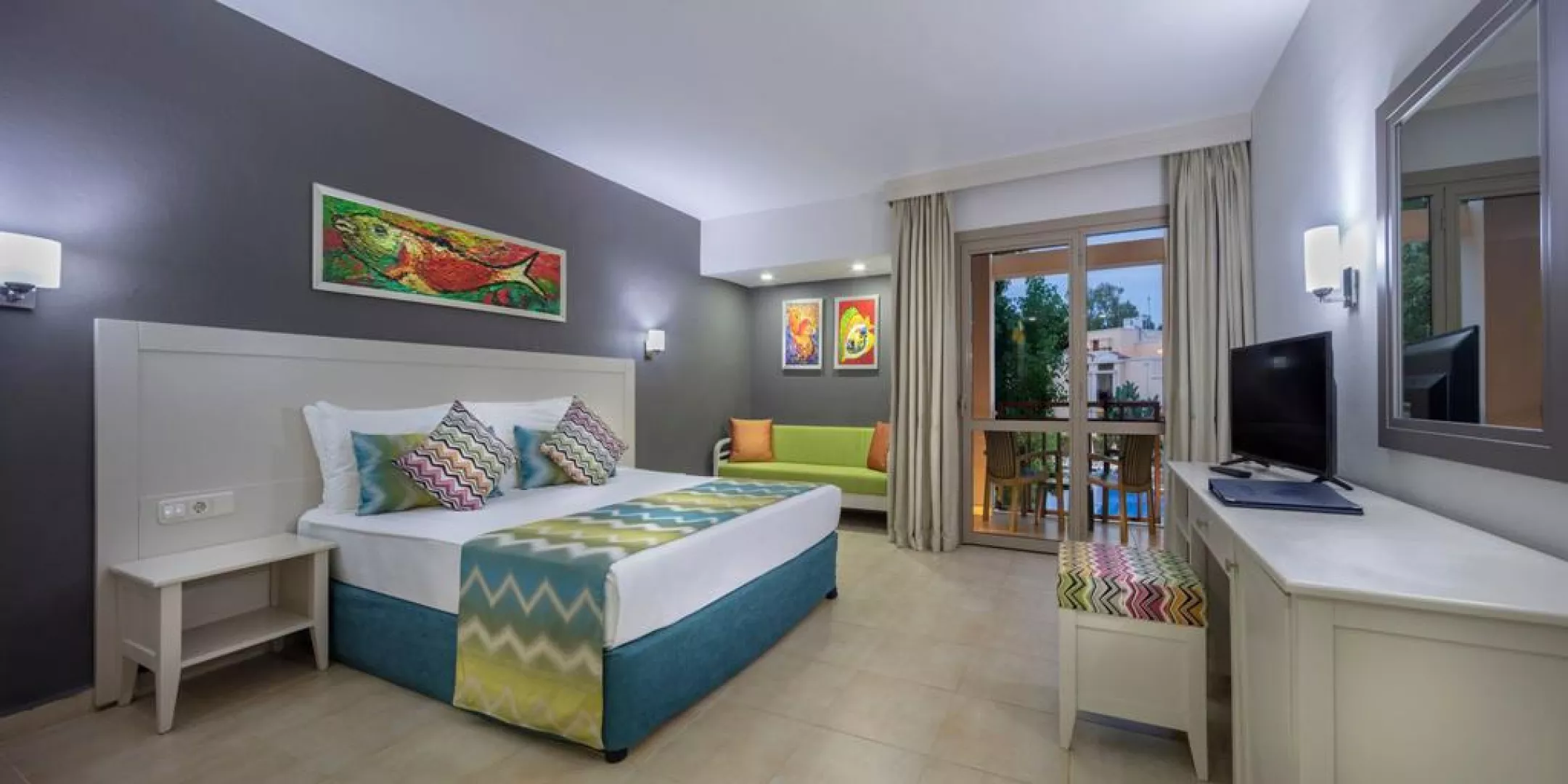 Hotel ponúka dvojlôžkové izby s centrálne ovládanou klimatizáciou, telefónom, LCD TV so satelitným príjmom a minibarom (doplňovaný vodou a nealko nápojmi pri príchode). V izbách sa nachádza aj trezor (zadarmo), bezplatné Wifi a vlastné sociálne zariadenie (kúpeľňa so sprchou, sušič vlasov, WC). Izby majú balkón alebo terasu s výhľadom do záhrady. Ďalšie typy izieb zahŕňajú rodinné izby s oddelenou spálňou a Economy izby pre maximálne 2 dospelé osoby.
