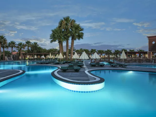 Areál hotela disponuje 591 izbami v niekoľkých budovách. K dispozícii je 13 výťahov, vstupná hala s recepciou, hlavná reštaurácia, bary, snack bary, práčovňa a požičovňa bicyklov. Hostia môžu využiť aj služby lekára, vodnej fajky, SPA centra, obchodov, knižnice či kaderníka. Vonkajšie bazény a aquapark sú skvelým miestom na zábavu, zatiaľ čo miniklub a vnútorný bazén sú ideálne pre rodiny s deťmi.