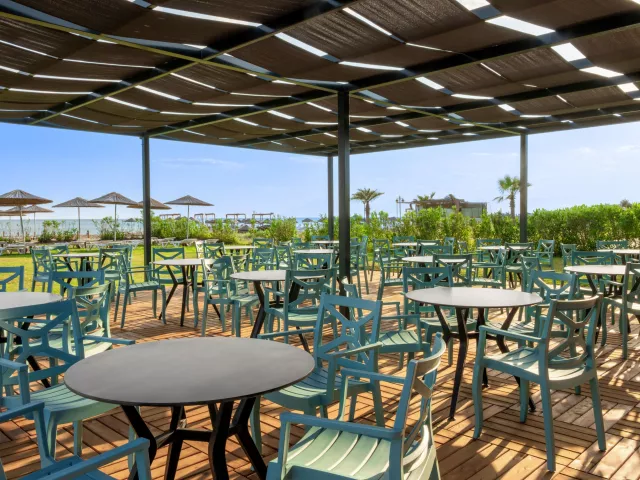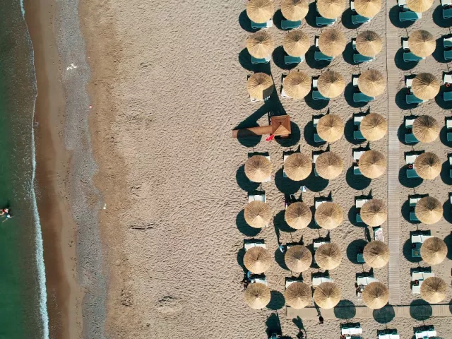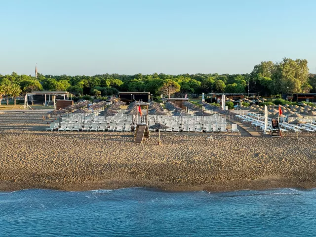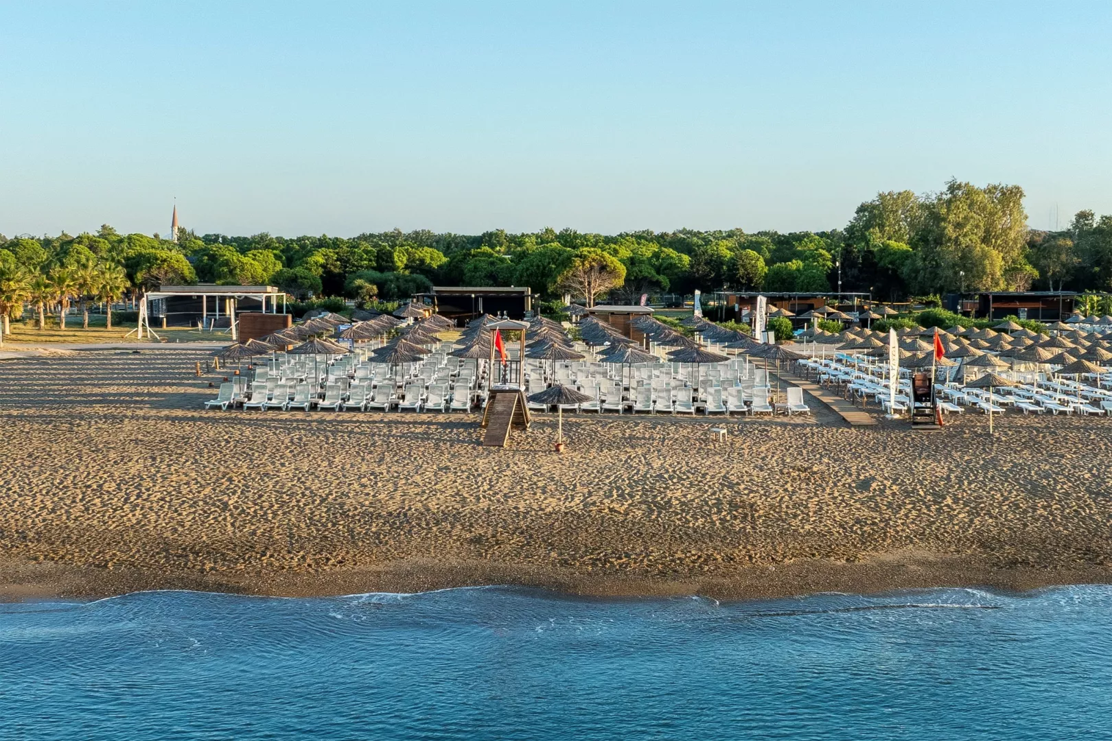 Príjemná piesočnato-okruhliaková pláž je vzdialená 2,5 km od hotela, na ktorú sa môžete dopraviť bezplatným shuttle busom, ktorý premáva každých 10-15 minút. Na pláži sú k dispozícii slnečníky, ležadlá a osušky zdarma, pričom plážový bar je súčasťou ultra all inclusive ponuky.