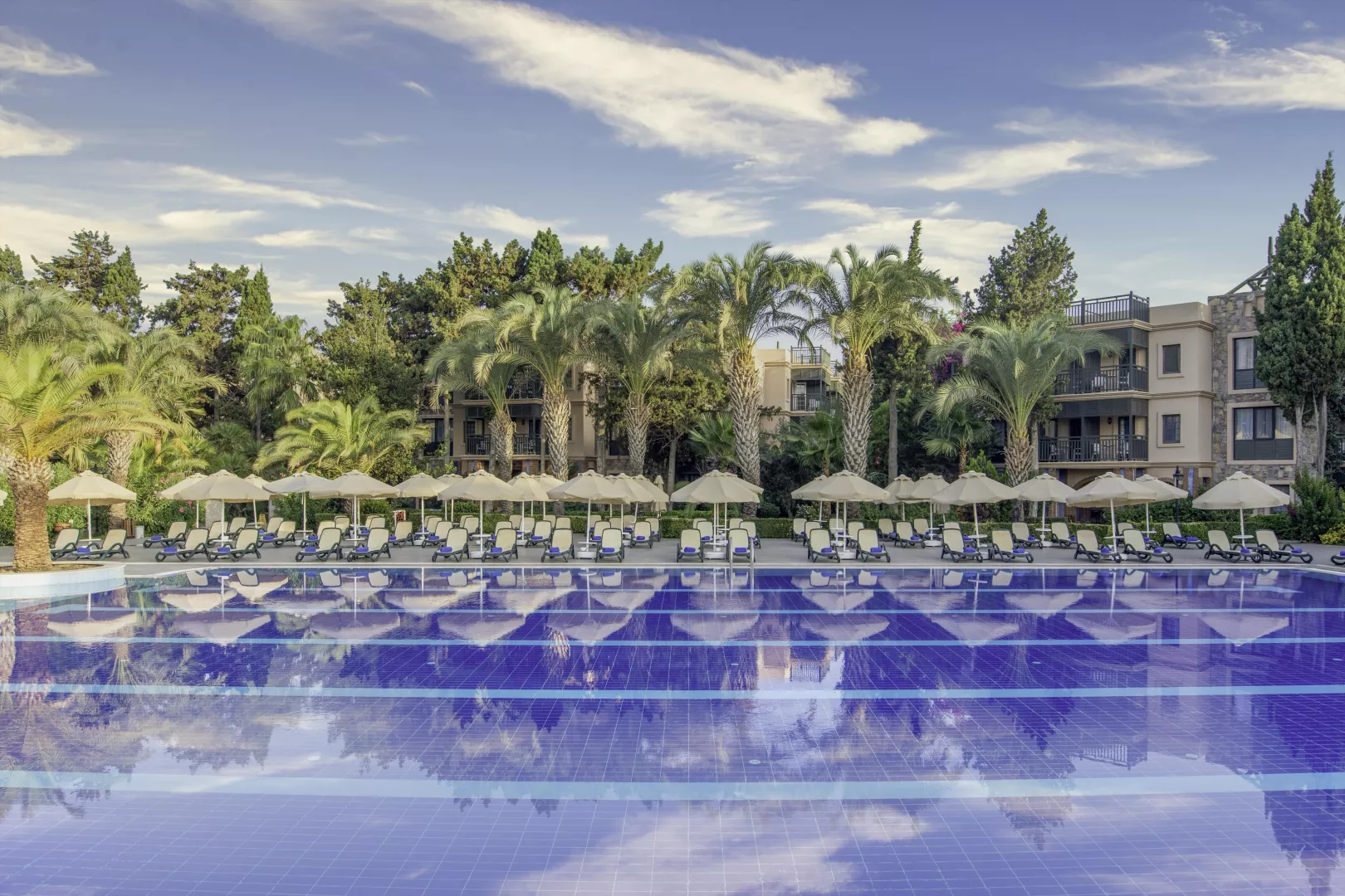 Hotel rozprestierajúci sa na ploche 46 000 m2 ponúka 375 izieb v deviatich trojposchodových budovách. Disponuje vstupnou halou s recepciou, hlavnou reštauráciou a dvoma reštauráciami à la carte (za poplatok s rezerváciou). K dispozícii sú tiež tri bary: bar pri bazéne, snack bar a lobby bar. Relaxovať môžete pri dvoch bazénoch (jeden určený len pre dospelých) s bezplatnými ležadlami a slnečníkmi, tobogánom a detským bazénom. Hotel disponuje aj obchodnou arkádou, kaderníckymi službami a konferenčnými miestnosťami.