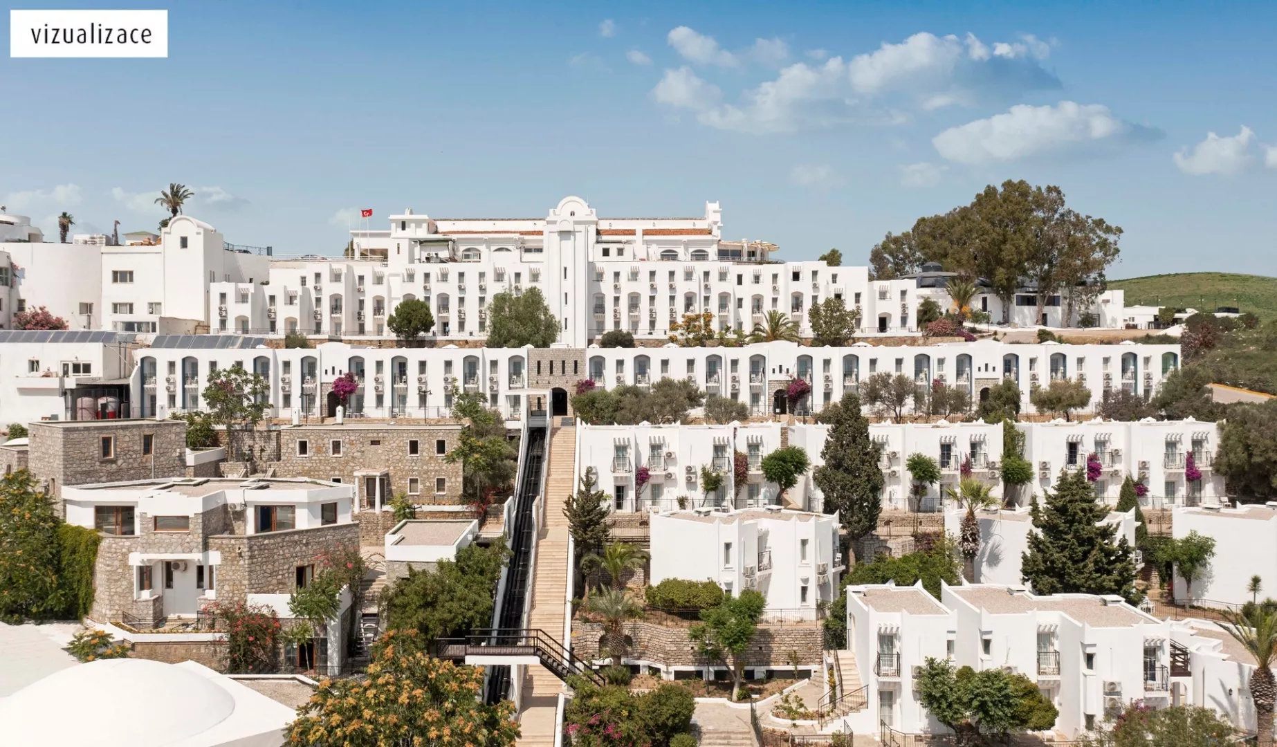 Moderný päťhviezdičkový hotel v bezprostrednej blízkosti centra Bodrumu ponúka jedinečnú atmosféru prímorskej dedinky, ktorá autenticky odráža nedotknutú krásu Egejského mora. Kamenné chodníky, biele domy, bugenvília, olivovníky a tienisté priechody vedúce k moru sa spolu so siluetami okolitých ostrovov prepájajú v prirodzenú a harmonickú krajinu.