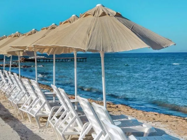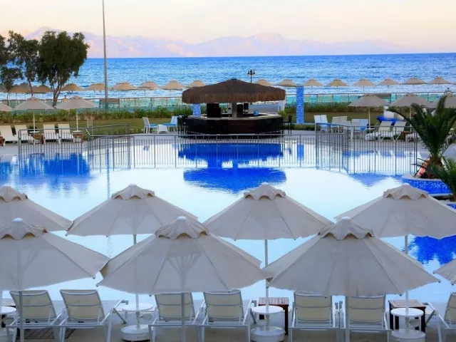 Priamo pri hoteli sa nachádza užšia piesočnato-okruhliaková pláž, oddelená iba pešou promenádou. Lehátka a slnečníky sú na pláži k dispozícii zadarmo.