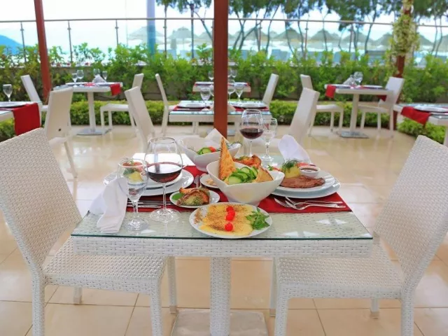 Hotel ponúka systém all inclusive, čo zabezpečuje širokú škálu stravovacích možností.