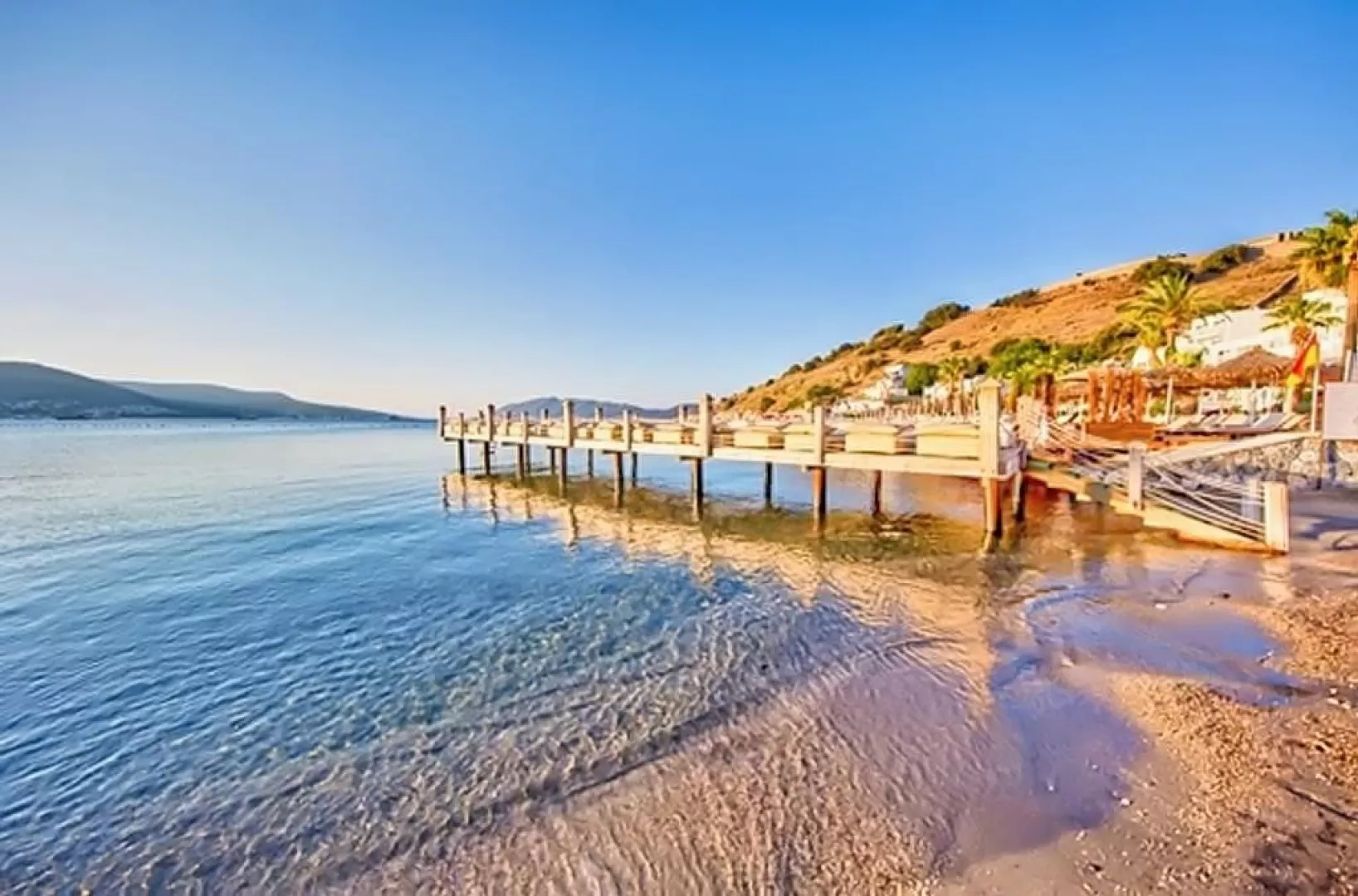Malá piesočnato-kamienková pláž s mólom sa nachádza približne 60 m od hotela. Ležadlá a slnečníky na pláži sú poskytované zdarma, rovnako ako uteráky.