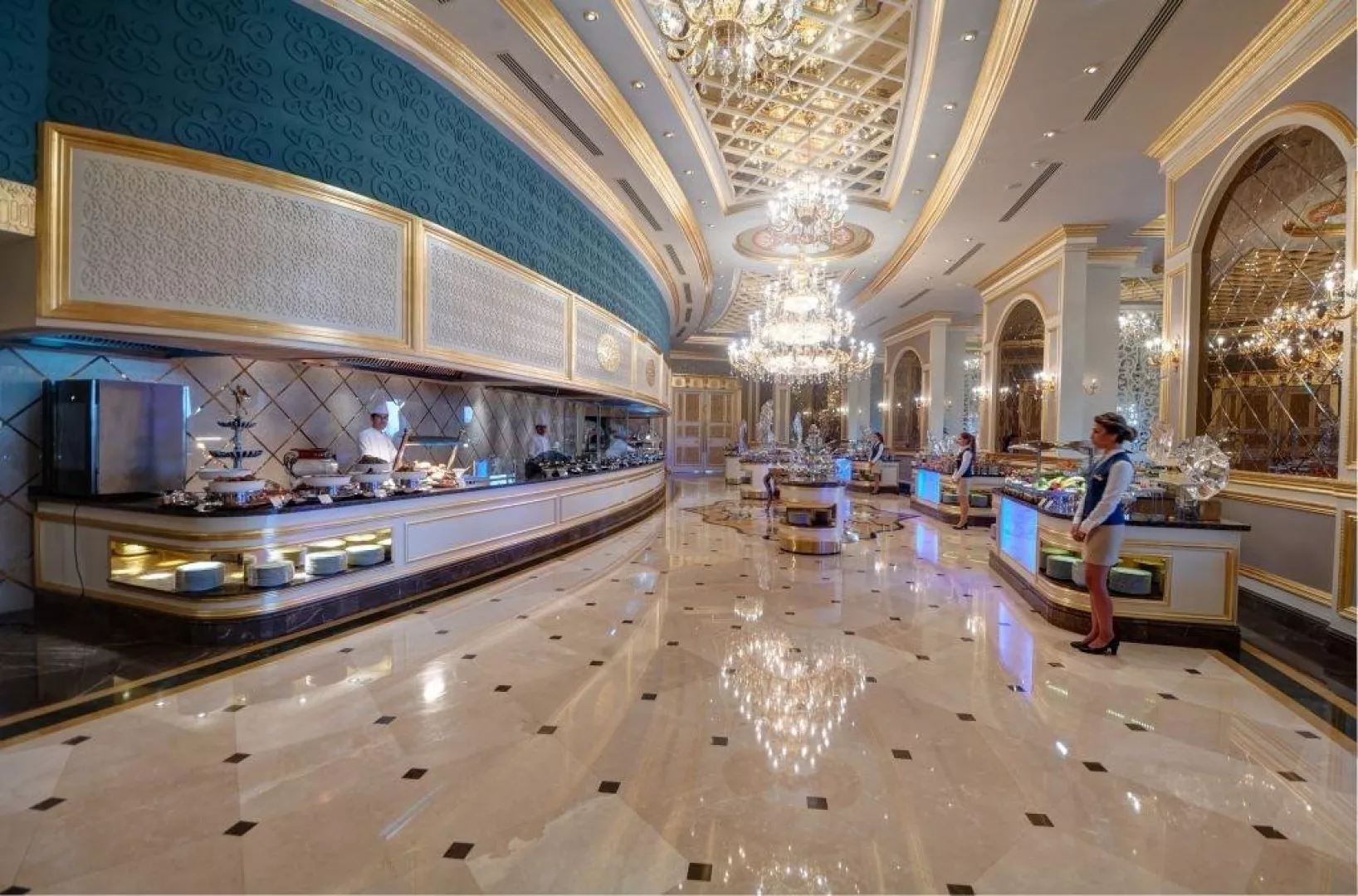 ULTRA All Inclusive: 24 hodín zahŕňa raňajky (7.00-10.00), neskoré raňajky (10.00-11.00), obedy (12.30-14.30) a večere (19.00-22.00) formou bohatého bufetu, nočný snack (23.00-7.00) výber z menu, počas stravovania neobmedzený nápojov a miestnych alkoholických nápojov. Vybrané reštaurácie a la carte: 19.00-22.00 večera formou výberu z menu, nutnosť predchádzajúcej rezervácie Snack bar pri bazéne: 19.00-22.00 ľahké občerstvenie, pita a pizza, 12.00-18.00 zmrzlina a ovocie Snack bar na pláži: 12.30-16.30 sendviče a burgre, 12.00-18.00 zmrzlina a ovocie Čokoládový bar: 11.00-18.00 čokoláda a čokoládové pochúťky Premium Bar (6:00-2:00) ponúka iba importovaný alkohol Patisserie: 11.00-18.00 káva, čaj a dezerty Lobby bar: 24 hodín denne neobmedzené množstvo rozlievaných nealkoholických nápojov a miestnych alkoholických nápojov Ostatné bary: podľa otváracej doby neobmedzené množstvo rozlievaných nealkoholických nápojov a miestnych alkoholických nápojov Upozornenie: vyššie uvedené miesta a časy podávania sú určené hotelom a môžu sa zmeniť.
