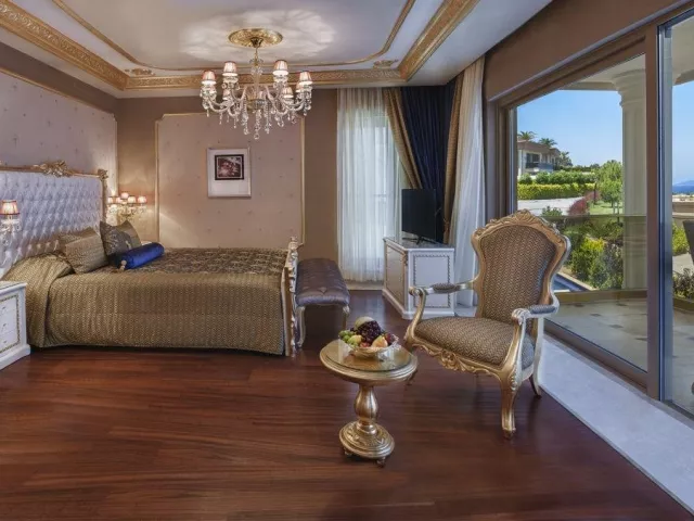 Štúdio , Výhľad do záhrady klimatizácia TV telefón Wi-Fi (zdarma) minibar vlastné sociálne zariadenie (kúpeľňa, sušič vlasov, WC) set na prípravu čaju a kávy balkón alebo terasa Ostatné typy izieb (pokiaľ nie je uvedené inak, majú izby vyššie uvedené vybavenie) Štúdio , Výhľad na more Dvojlôžková izba , Superior , Výhľad na more Dvojlôžková izba , Deluxe , Výhľad na more Dvojlôžková izba , Deluxe, Priamy vstup do bazéna , Výhľad na more Suita , Deluxe , Výhľad na more Suita , Premium , Výhľad na more Grand Suita , Výhľad na more