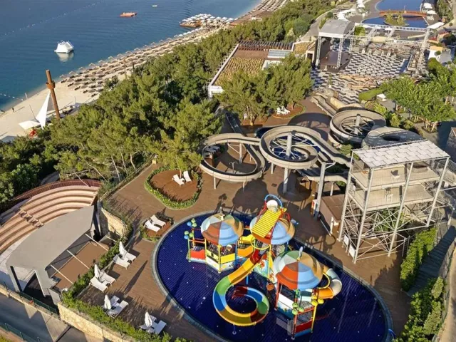 Nachádza sa v kopci, ktorý sa zvažuje ku krásnej súkromnej pláži v zálive. Dospelí ocenia špičkové vybavenie a bohaté večerné programy, zatiaľ čo najmenších zaujme rozsiahla časť s vodnými šmykľavkami a detským ihriskom. Tento hotel je ideálnou voľbou pre rodinnú dovolenku, ale aj pre romantické pobyty vo dvojici.