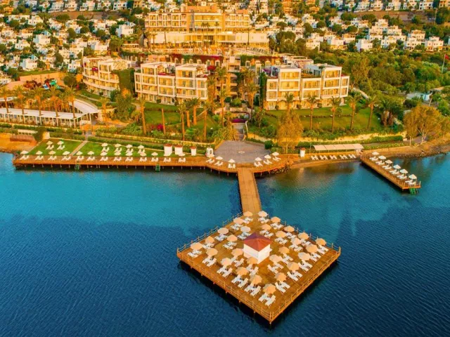 Moderný rezort postavený v nádhernom prírodnom prostredí patrí do prestížnej hotelovej siete Baia Hotels. Medzinárodné letisko v Bodrume je vzdialené 50 km.