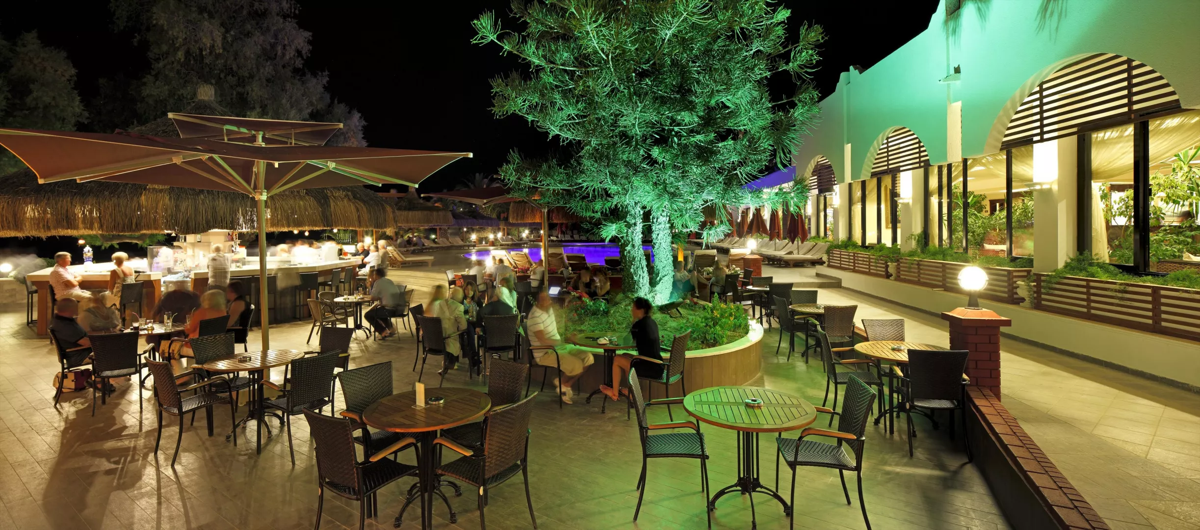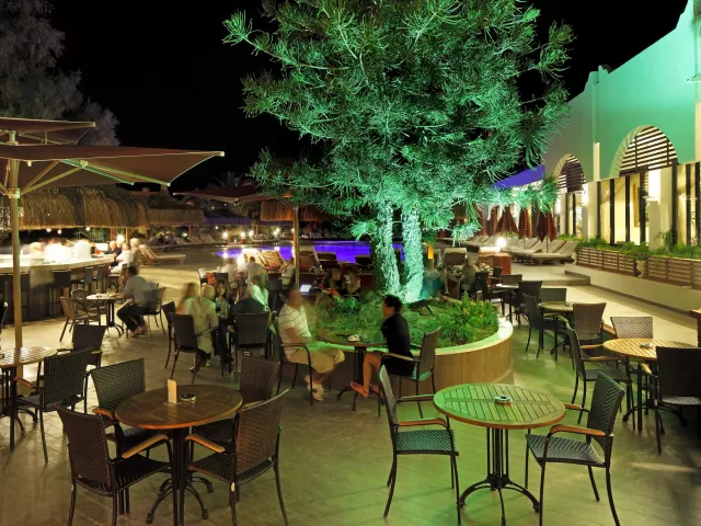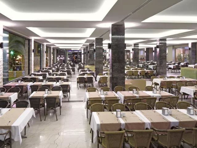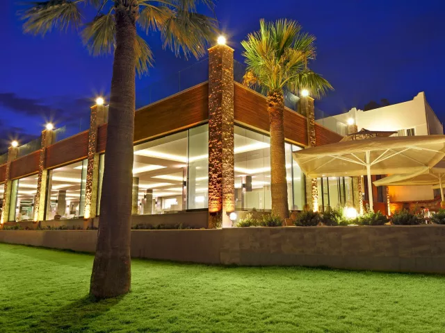 V areáli hotela sa nachádza vstupná hala s recepciou, niekoľko dvojpodlažných budov rozmiestnených v upravenej záhrade, dve reštaurácie s obsluhou (talianska a morské plody, jedna zdarma raz za pobyt s potrebnou rezerváciou), hlavná reštaurácia, snack bar, cukráreň, lobby bar, bar pri bazéne a plážový bar, diskotéka, 2 tenisové kurty, minigolf, stolný tenis, vonkajšia cvičebná plocha, mólo, 2 bazény pre dospelých, 2 detské bazény a bazén so šmykľavkami, ako aj wellness centrum SPA.