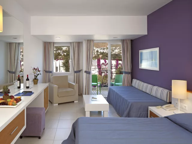 Izby sú vybavené individuálne ovládanou klimatizáciou, balkónom alebo terasou, minibarom (doplneným nealkoholickými nápojmi pri príchode a neskôr iba vodou), kúpeľňou/WC s vaňou a sušičom vlasov, TV, telefónom, trezorom (zdarma), setom na prípravu kávy a čaju a Wi-Fi. K dispozícii sú rôzne typy izieb, vrátane dvojlôžkových izieb s výhľadom do záhrady a s výhľadom na more.