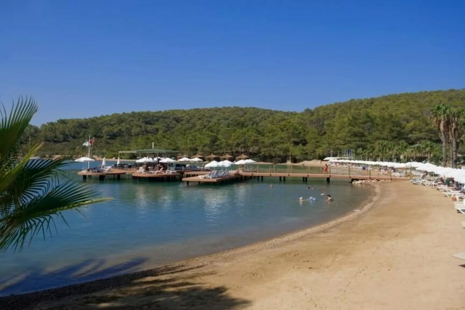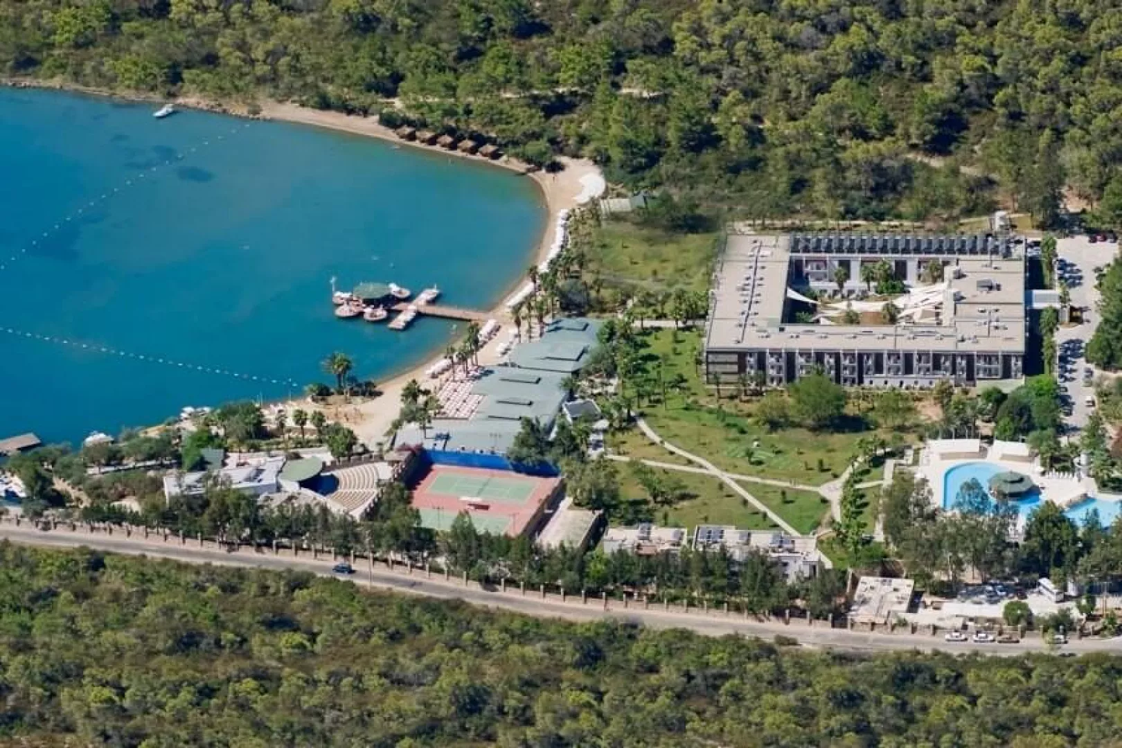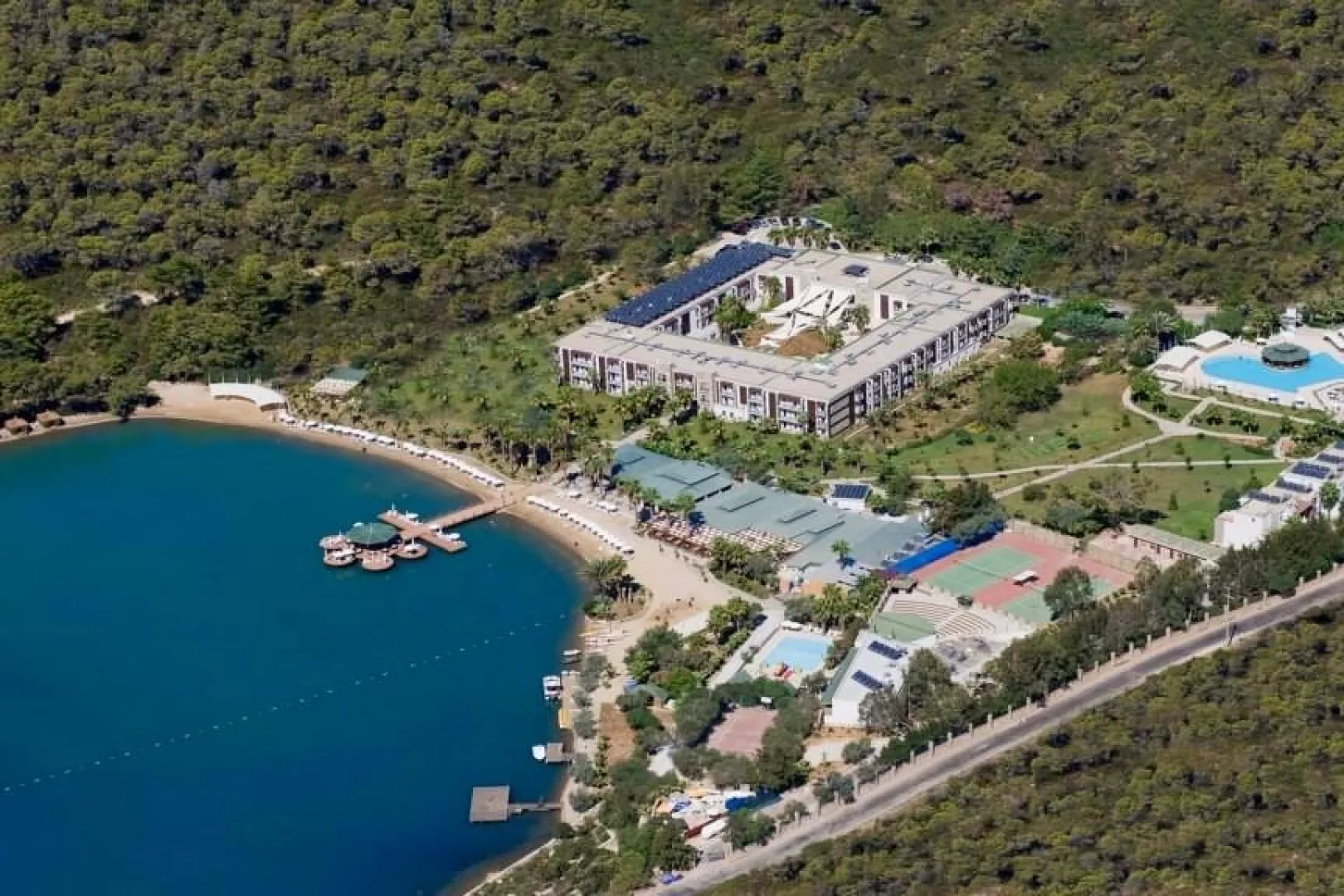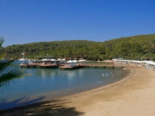 Hotel Crystal Green Bay Resort & Spa sa nachádza v súkromnej zátoke v zálive Green Bay, obklopený borovicovým lesom, len pár krokov od malebnej pláže. V blízkosti hotela sa nachádza najbližšie letovisko Güvercinlik vzdialené 5 km a známe letovisko Bodrum, ktoré sa nachádza približne 25 km od hotela. Vzdialenosť k pláži je priamo pri hoteli a letisko sa nachádza 18 km od rezortu.
