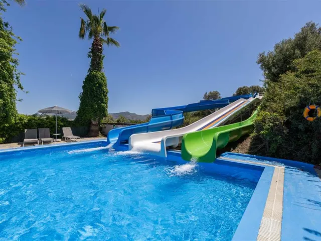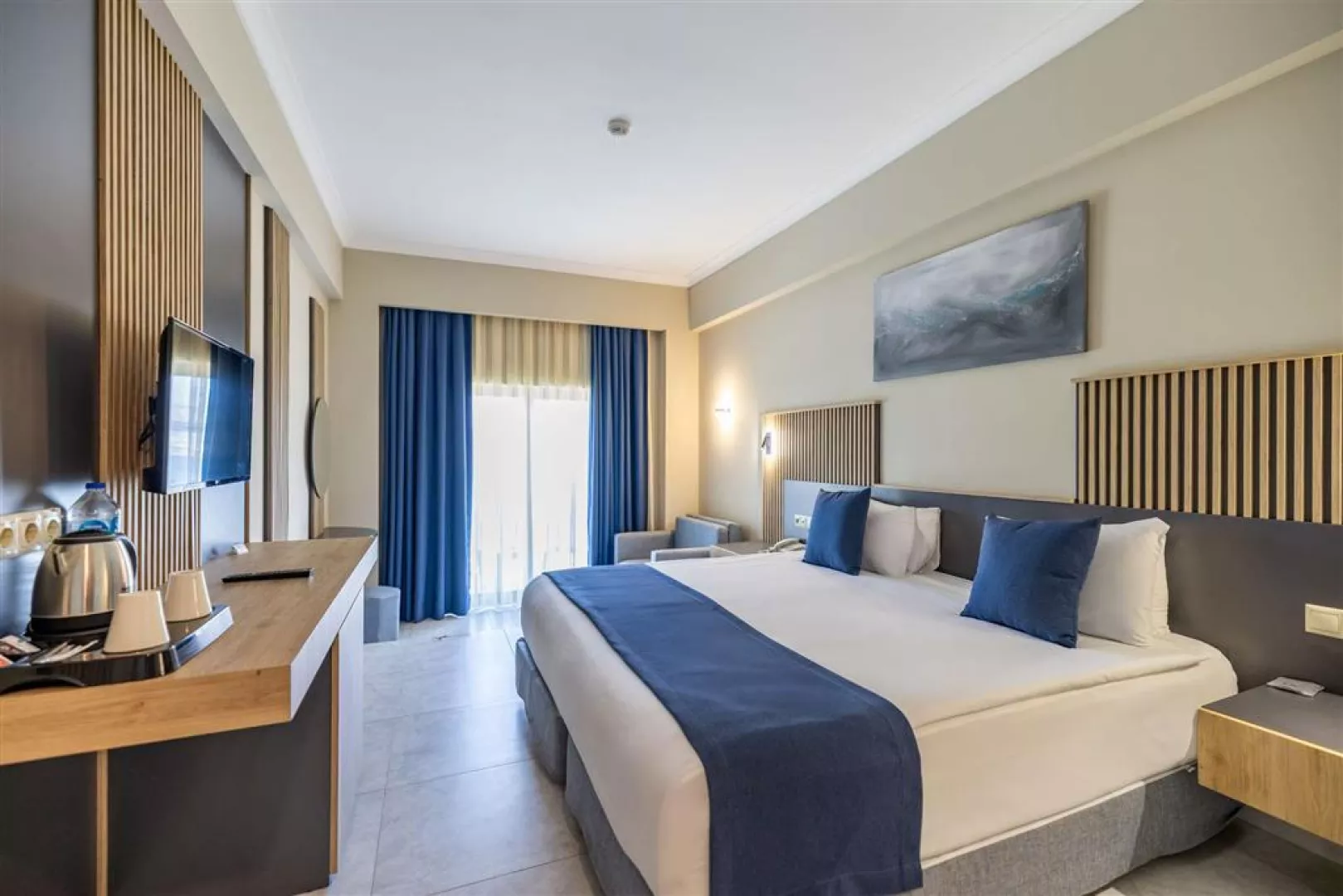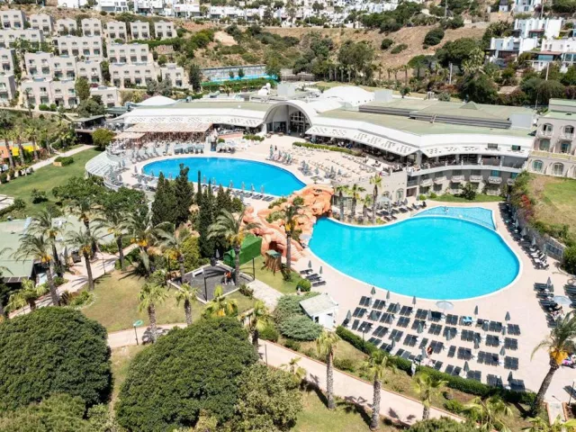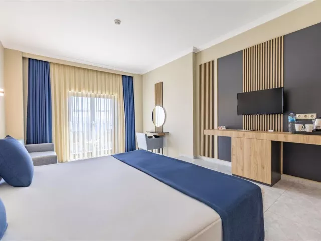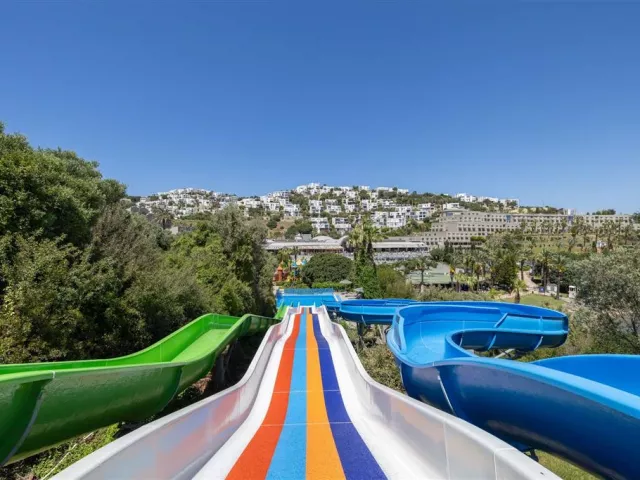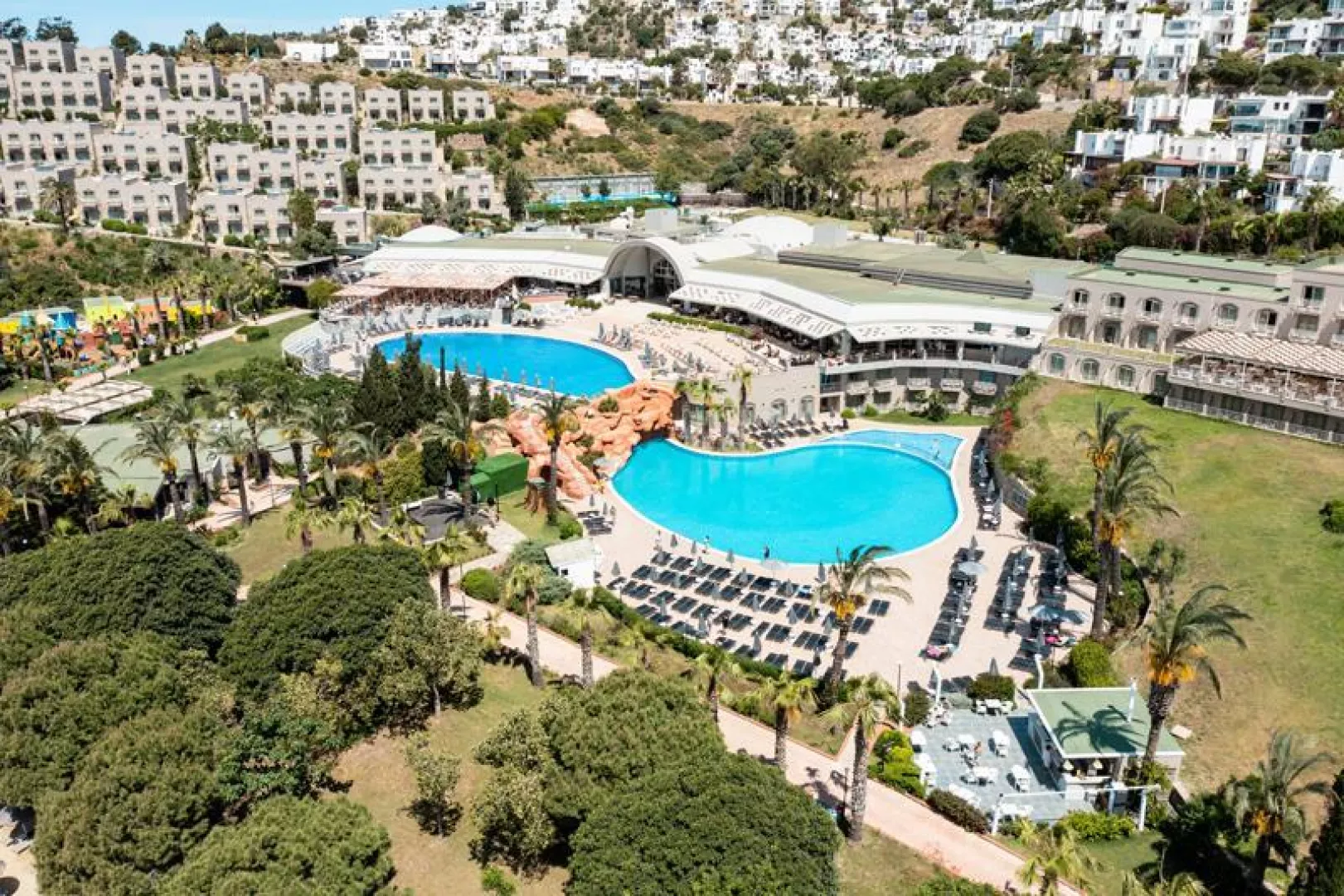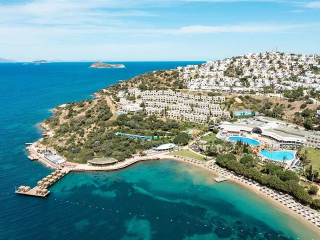 Zažite nezabudnuteľnú rodinnú dovolenku v rezorte priamo pri nádhernej súkromnej pláži ocenenou Modrou vlajkou. Očarujúce výhľady na priezračné Egejské more a krásne zelené záhrady vytvárajú dokonalú atmosféru pre oddych a zábavu pre celú rodinu.