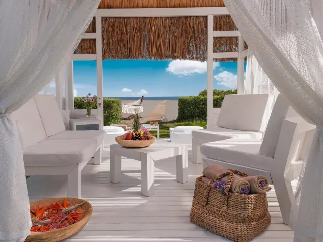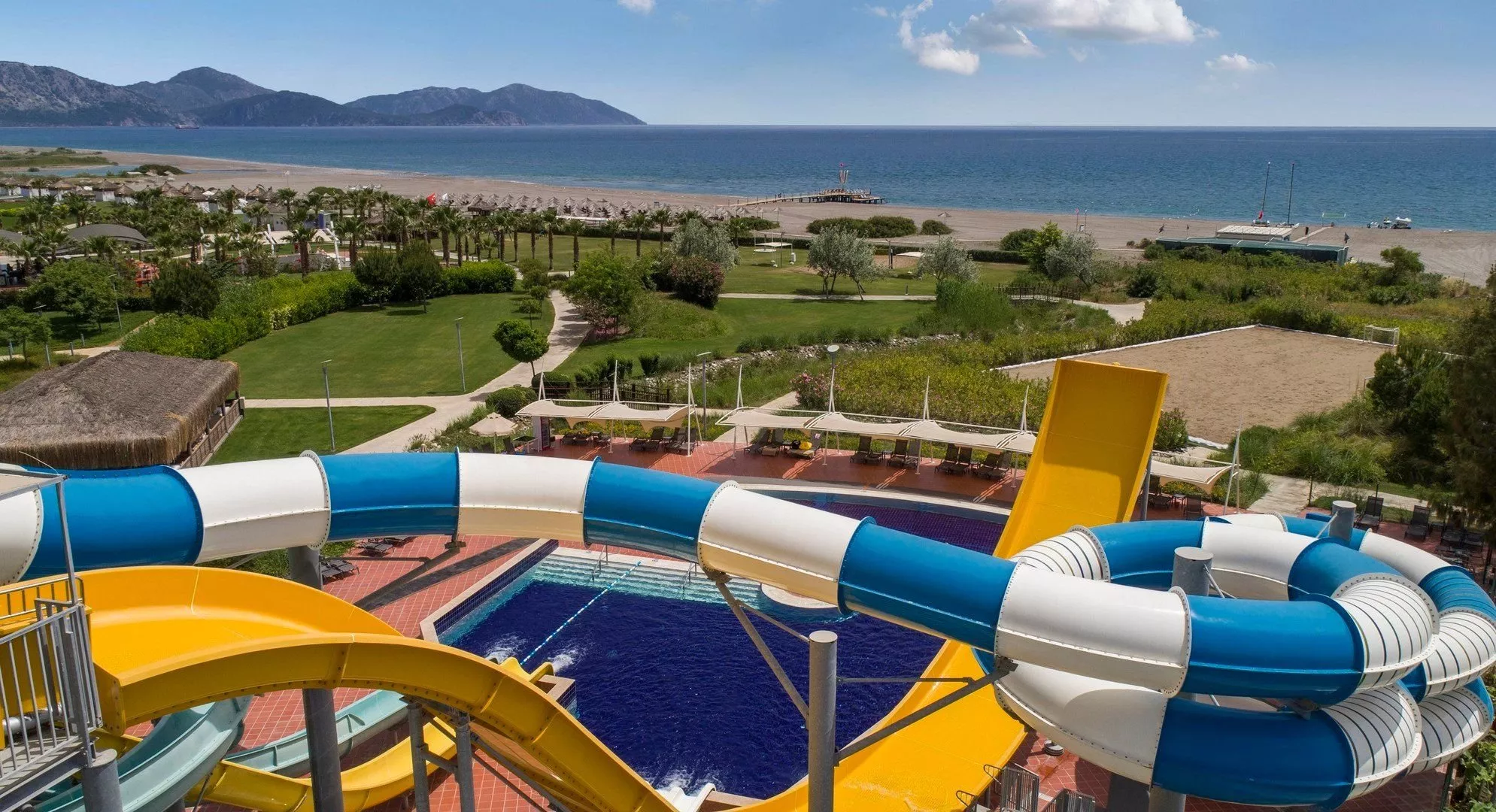 Hotel disponuje cca 650 m dlhou súkromnou piesočnatou plážou s mólom. Na pláži sú k dispozícii slnečníky, ležadlá a osušky bezplatne. Pláž je ocenená certifikátom modrej vlajky a v rámci all inclusive ponúka aj plážový bar.