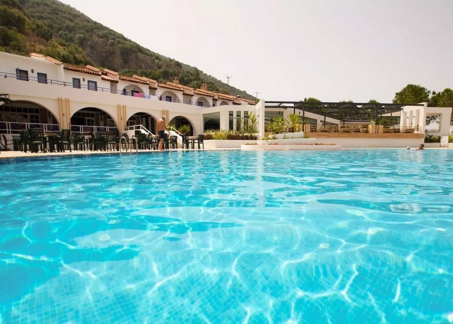 Písčito-kamienková pláž sa nachádza iba 50 metrov od hotela. Slnečníky a lehátka sú k dispozícii zdarma.