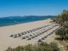 Piesková pláž s pozvoľným vstupom do mora a bezplatným plážovým servisom. Centrum vodných športov je dostupné za poplatok.