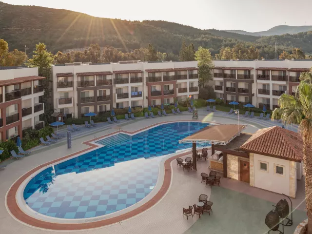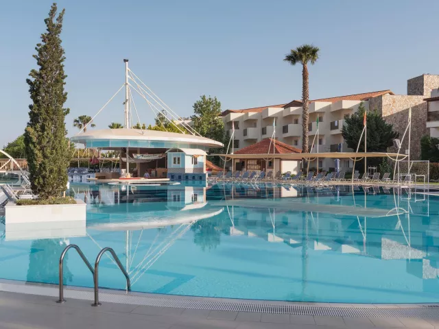 Rozľahlý moderný komplex pozostávajúci z hlavnej budovy a klubovej časti sa nachádza priamo pri súkromnej piesočnatej pláži s tmavým pieskom. Súčasťou hotela je veľký aquapark, ktorý je pre ubytovaných zdarma. Hotel je ideálnou voľbou pre tých, ktorí hľadajú aktívnu dovolenku, a rodiny s deťmi.