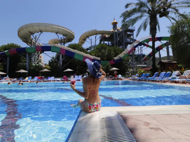 Hotel ponúka vstupnú halu s recepciou, hlavnú reštauráciu, 5 reštaurácií s obsluhou (turecká, talianska, ázijská, rybia - jedna z nich 1x za pobyt zdarma) a steakovú reštauráciu (za poplatok, nutná rezervácia). K dispozícii je 7 barov, snack bary, internetová kaviareň (za poplatok), Wi-Fi v celom komplexe (základné pripojenie na recepcii zdarma) a obchodná pasáž. Ďalej sú tu diskotéka, 2 konferenčné miestnosti, 3 vonkajšie bazény (ležadlá a slnečníky zdarma), 4 detské bazény, 2 vnútorné bazény a aquapark s 31 šmykľavkami. Pre deti je k dispozícii detské ihrisko, miniklub (4-7 rokov) a junior klub (8-12 rokov).