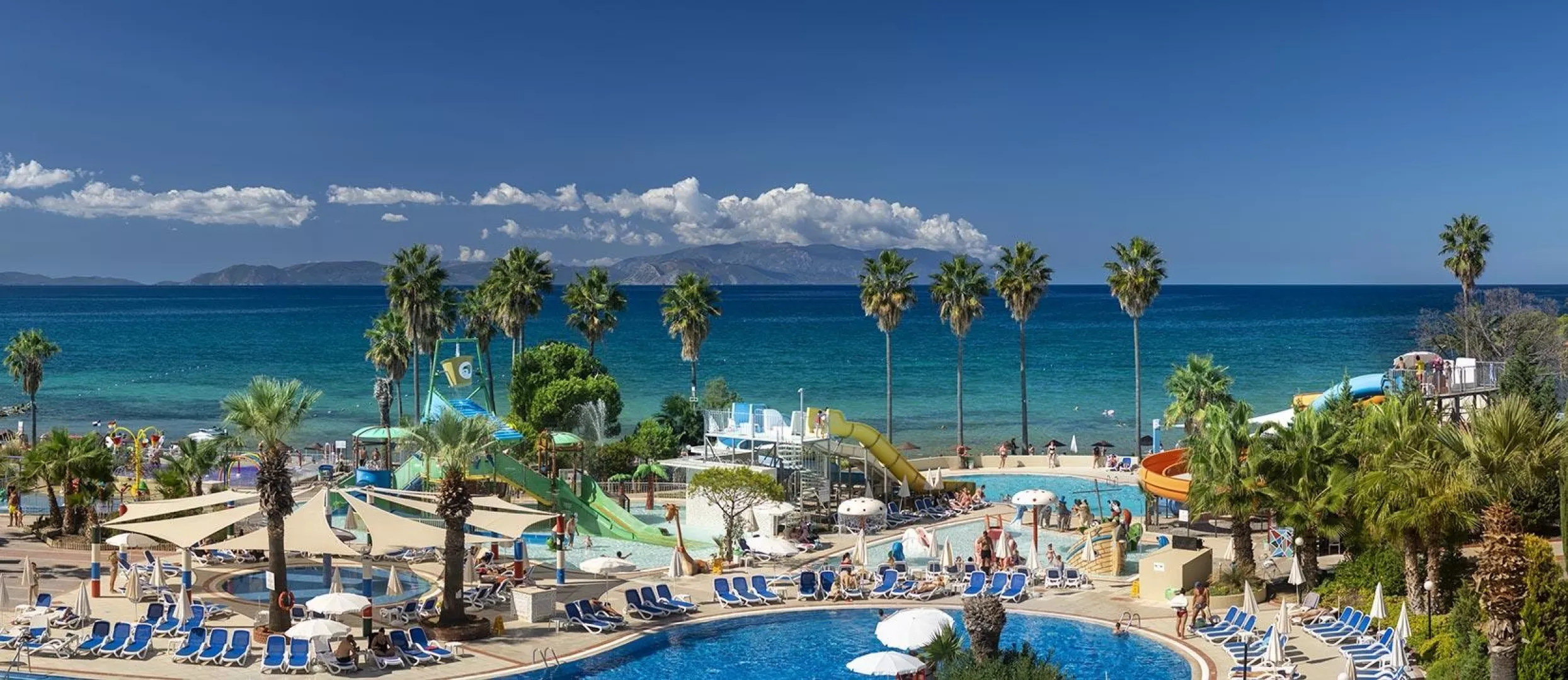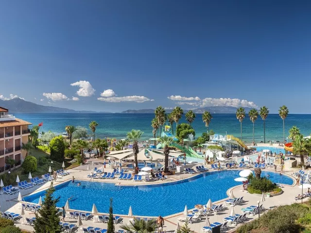 Vyhľadávaný rodinný rezort sa nachádza priamo pri krásnej pieskovej pláži s očarujúcim výhľadom na Egejské more. V blízkosti leží obľúbené letovisko Kuşadası, čo pridáva na atraktívnosti tohto miesta.