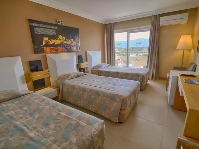 Priestranné dvojlôžkové izby s možnosťou až 2 prísteliek, izby s bočným výhľadom na more za príplatok, bezplatné Wi-Fi pripojenie, kúpeľňa s WC a sušičom na vlasy, minibar, telefón, klimatizácia, TV, trezor, balkón alebo terasa.