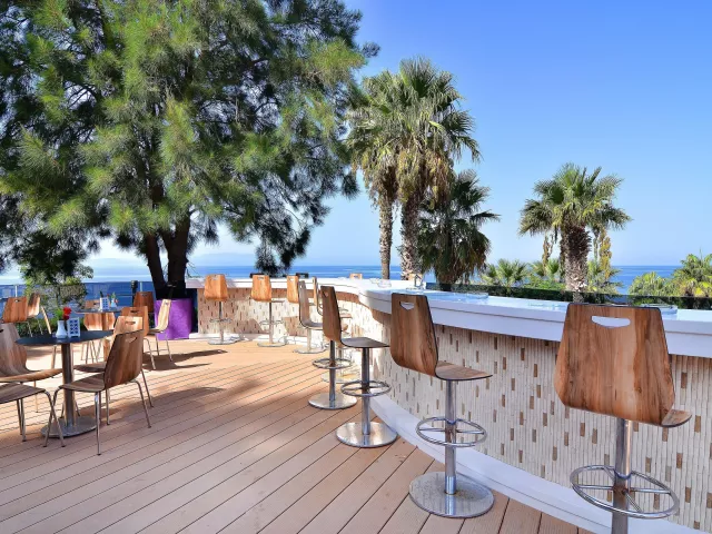 Pláž je piesočnatá s okruhliakmi a je prístupná po schodíkoch. Užívať si môžete ležadlá, slnečníky a plážové osušky (zadarmo), ako aj plážový bar.