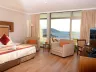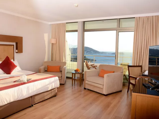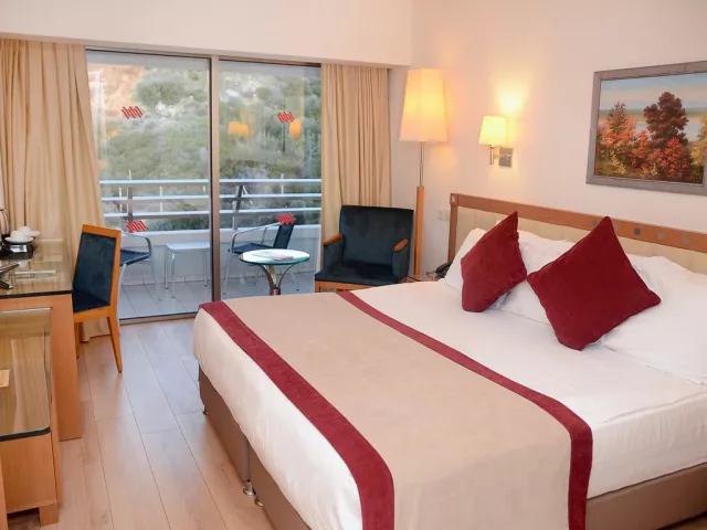 Moderne zariadené dvojlôžkové izby vo viacerých variantoch s možnosťou prístelky a výhľadom na more alebo krajinu. Izby sú vybavené klimatizáciou, minibarom, satelitnou televíziou, trezorom a súkromnou kúpeľňou so sušičom na vlasy. Všetky izby majú balkón alebo terasu a bezplatné Wi-Fi pripojenie. Hotel má 3 izby prispôsobené pre handicapovaných klientov.