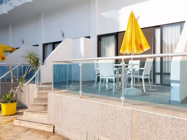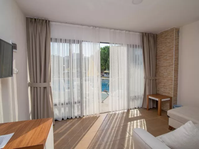 Hotel ponúka 50 komfortných izieb, pričom každá izba je vybavená balkónom, klimatizáciou, televízorom a chladničkou. K dispozícii sú aj rýchlovarné kanvice a wifi. Štandardné izby majú veľkosť od 23 do 30 m² a môžu ubytovať až 3+1 osoby. Pre rodiny sú k dispozícii duplex izby a rodinné izby.