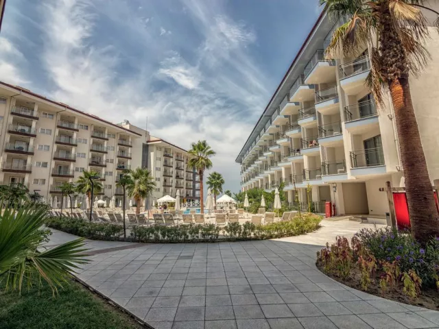 Hotel sa rozkladá na ploche 20 000 m2 v blízkosti centra Kusadasi. Vďaka svojej polohe ponúka skvelé možnosti na spoznávanie mesta a okolitých pamiatok, rovnako ako úchvatný výhľad na pobrežie Egejského mora. S viacerými bazénmi a aquaparkom je ideálnou voľbou pre páry aj rodiny.