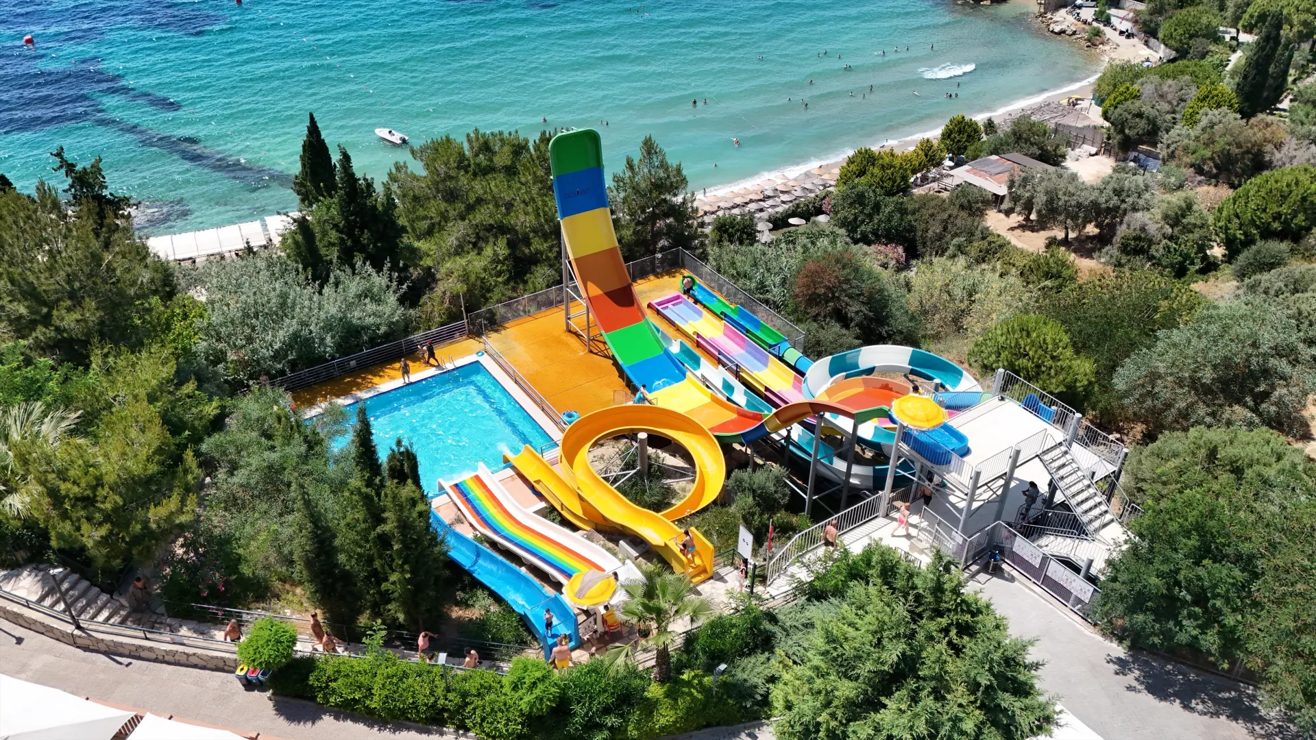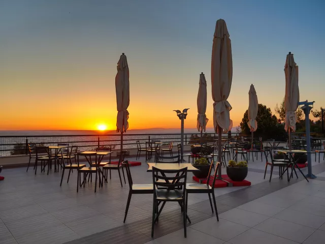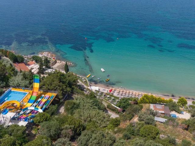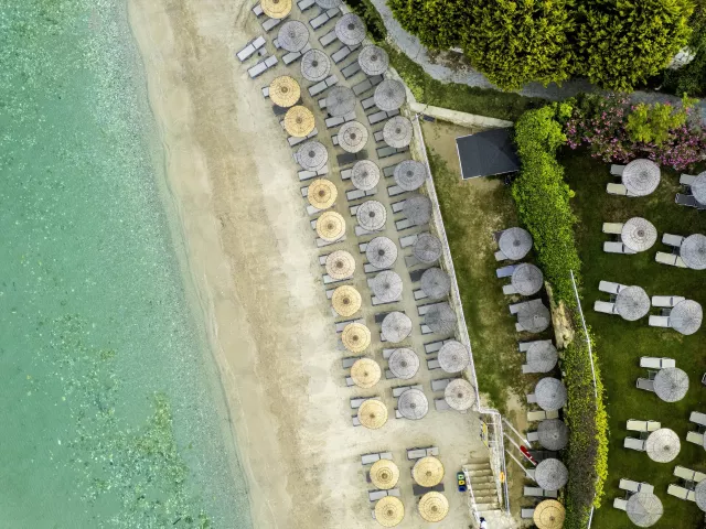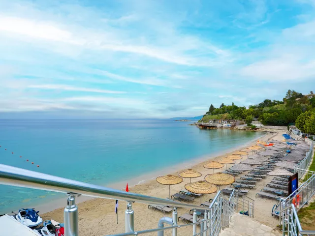 Piesočnatá pláž s kamienkami ponúka ležadlá, slnečníky a plážové osušky zdarma. Na pláži sa nachádza plážový bar a hotel zabezpečuje bezplatnú kyvadlovú dopravu na pláž.