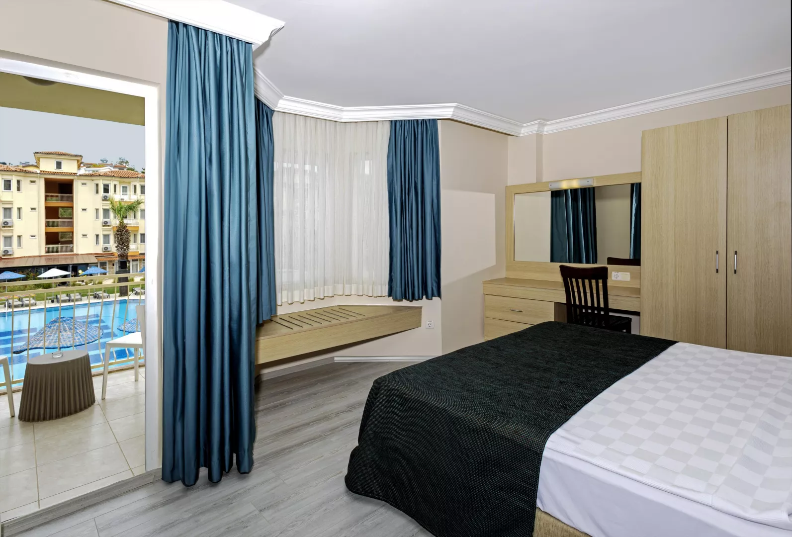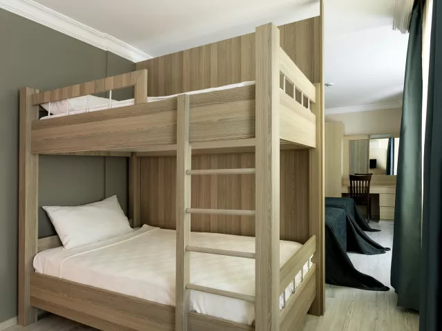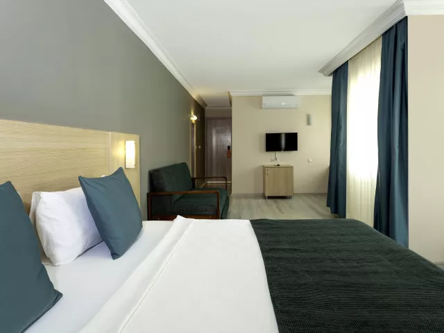Dvojlôžková izba: kúpeľňa/WC (sušič vlasov), individuálna klimatizácia, TV/SAT, trezor (zdarma), rýchlovarná kanvica, minibar (za poplatok), poschodová posteľ a balkón. Detská postieľka je k dispozícii na požiadanie. Hotel ponúka obmedzený počet izieb prispôsobených pre hendikepovaných hostí, dostupných na vyžiadanie.