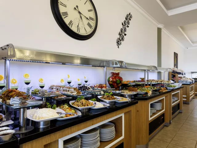 Stravovanie je zabezpečené formou All Inclusive. V lobby bare a bare pri bazéne sa podávajú raňajky, obedy, večere a rôzne snacky. Alkoholické a nealkoholické nápoje sú k dispozícii v baroch podľa konceptu hotela.