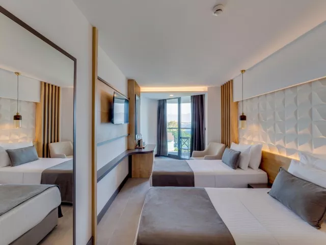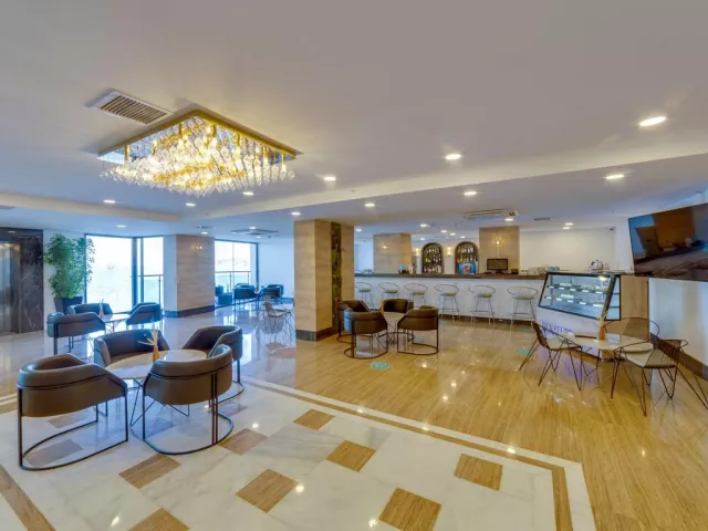 SLUŽBY: vnútorný bazén • hlavná reštaurácia • lobby bar • snack bar • TV kútik • turecký kúpeľ • sauna • wifi • za poplatok: SPA centrum • masáž • procedúry tureckého kúpeľa • obchody • lekárska služba • práčovňa • vodné športy na pláži