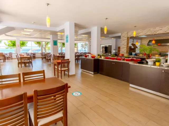Hotel ponúka stravovanie formou All Inclusive so širokým výberom pokrmov. Raňajky sa podávajú od 07:30 do 10:00, neskoré raňajky od 10:00 do 11:00, obed od 12:30 do 14:00 a večere od 19:30 do 21:30 formou bufetu. Medzi hlavnými jedlami sú k dispozícii ľahké snacky (12:30–17:00), popoludňajšia káva, čaj, zákusky, ovocie a zmrzlina. K dispozícii sú aj rozlievané alkoholické a nealkoholické nápoje miestnej výroby od 11:30 do 23:00.