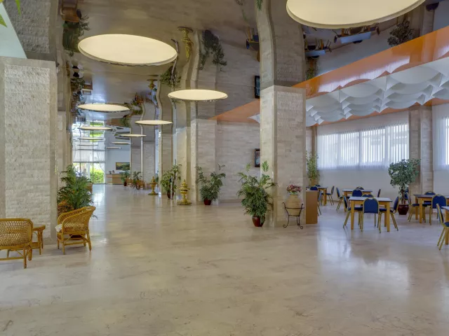 Hotel ponúka vstupnú halu s recepciou 24 hodín denne, hlavnú reštauráciu, lobby bar a snack bar. Tiež je k dispozícii Wi-Fi v lobby (zdarma), internetová kaviareň (za poplatok), výťahy, minimarket, butik, diskotéka (nápoje za poplatok), holičstvo (za poplatok), práčovňa a 3 konferenčné miestnosti. V areáli sa nachádza bazén s ležadlami, slnečníkmi a uterákmi zdarma, detský bazén a šmykľavky pre deti a dospelých. Pre najmenších je pripravený miniklub (pre deti od 4 do 12 rokov) a detské ihrisko. Hotel zaisťuje bezbariérový prístup.