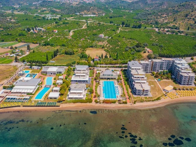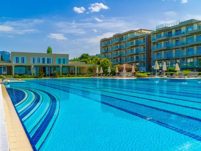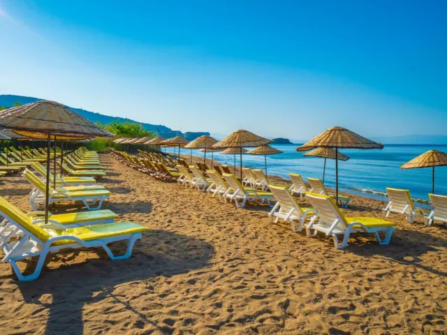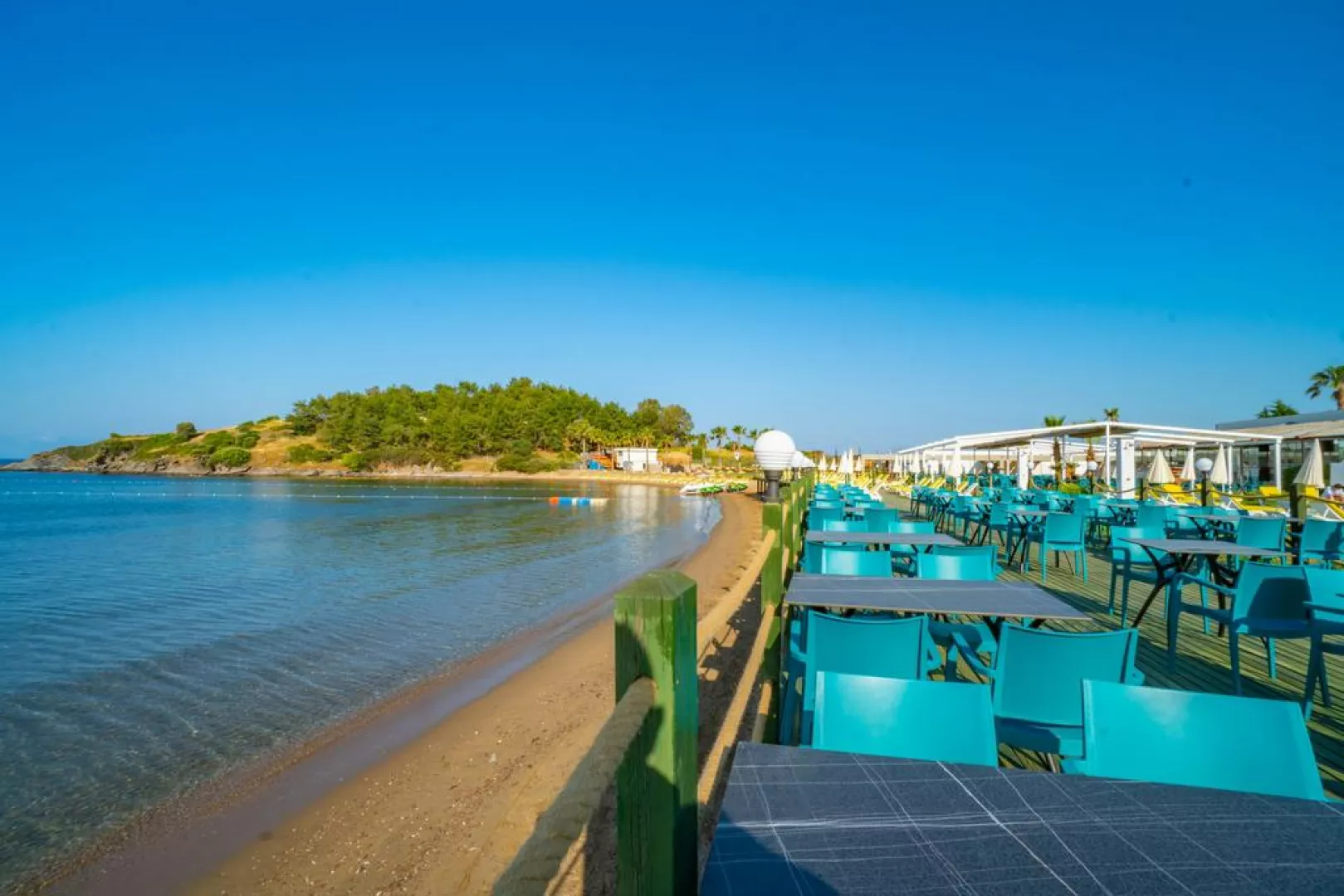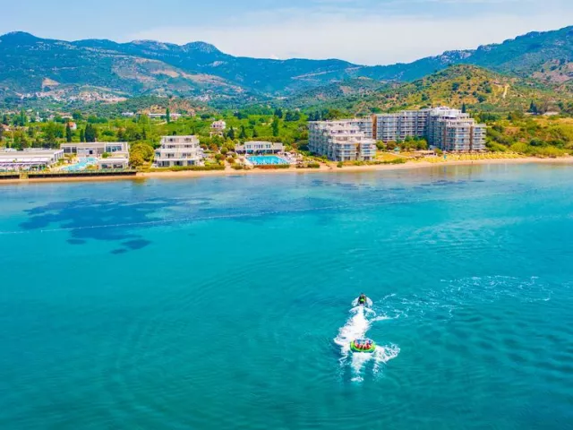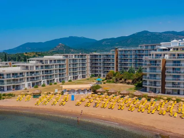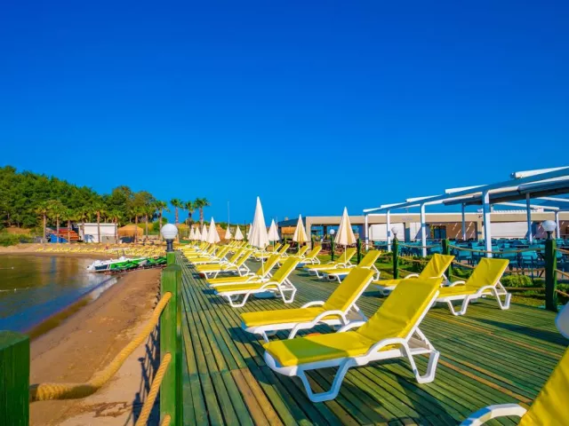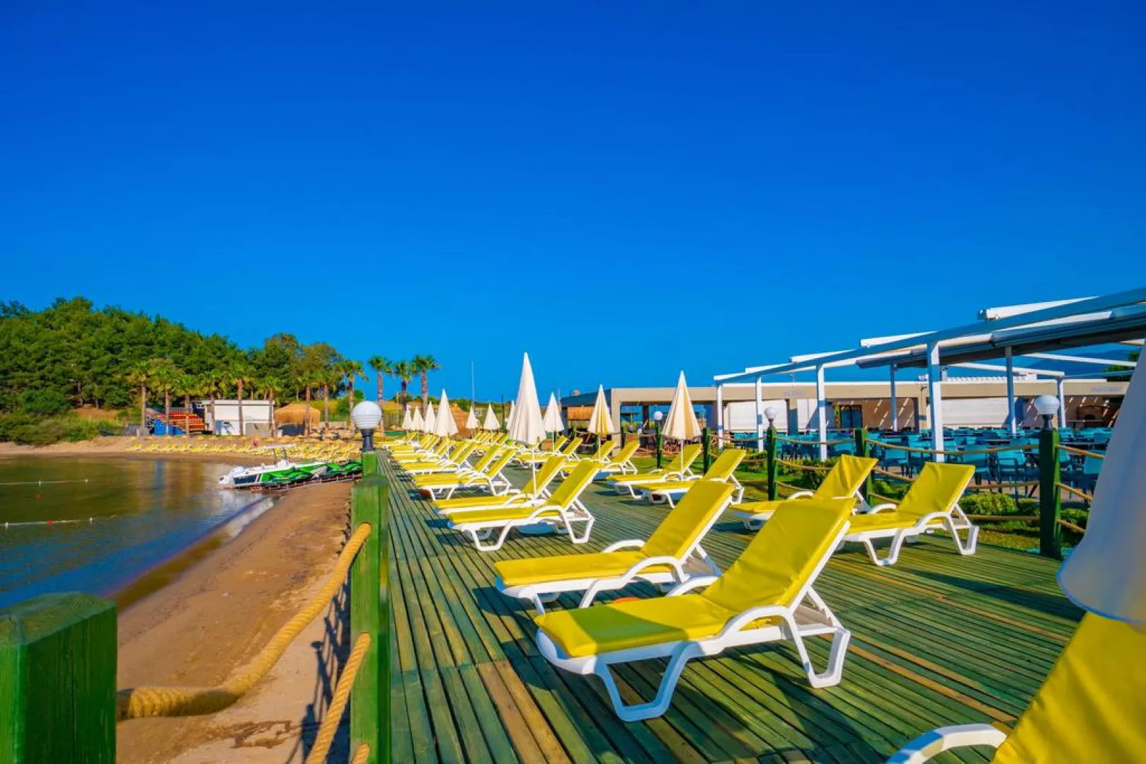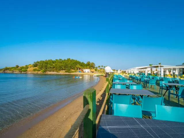 Rezort sa nachádza priamo pri piesočnato-kamienkovej pláži, kde sú lehátka a slnečníky zdarma, uteráky si môžete vyzdvihnúť v SPA centre.
