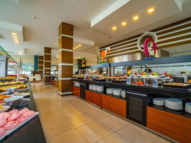 Resort disponuje vstupnou halou s recepciou, hlavnou reštauráciou, 277 izbami, tromi reštauráciami á la carte (1x za pobyt večera zdarma po rezervácii), snack barom, cukrárňou, lobby barom, barom pri bazéne a na pláži, diskotékou, a šiestimi bazénmi (hlavný, len pre dospelých, krytý, detský bazén s atrakciami a šmykľavkami - lehátka a slnečníky sú zdarma). K dispozícii je aj detské ihrisko, detský klub, kaderníctvo, obchod so suvenírmi a parkovisko. WiFi pripojenie je zdarma dostupné vo verejných priestoroch hotela, ako aj na izbách.