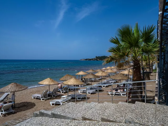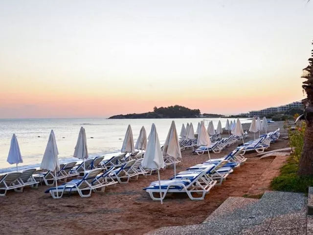 Pláž je piesočnatá a ponúka lehátka a slnečníky zdarma, osušky sú k dispozícii za zálohu. Na pláži sa nachádza aj plážový bar.