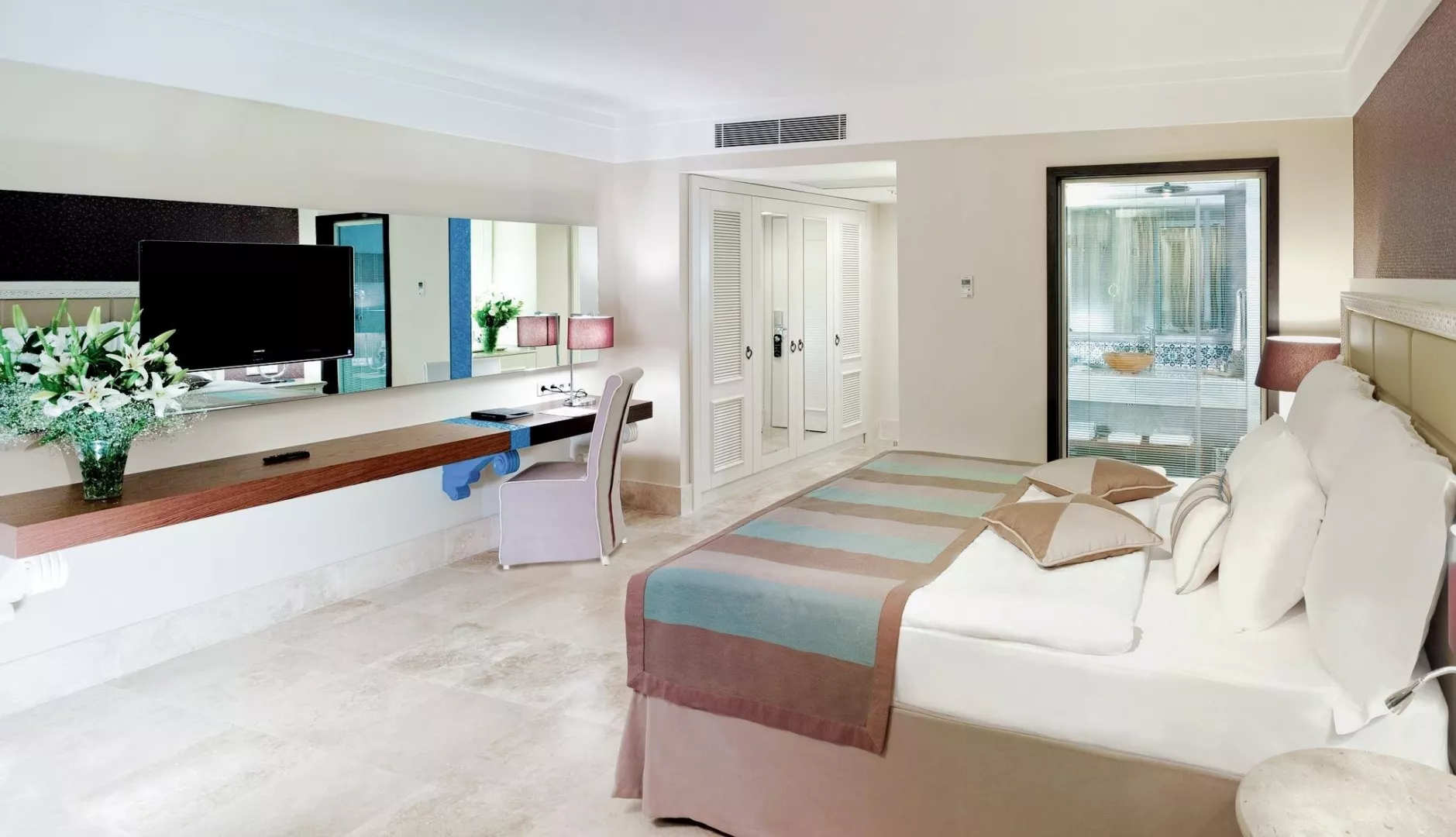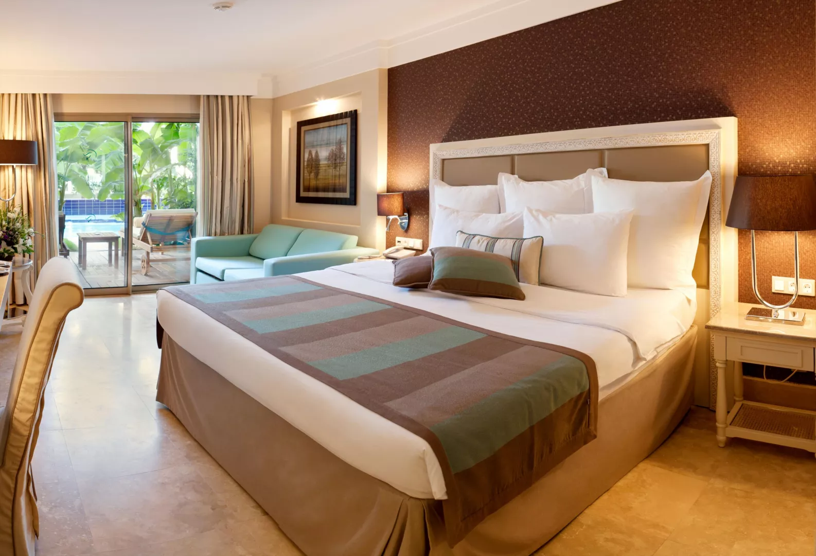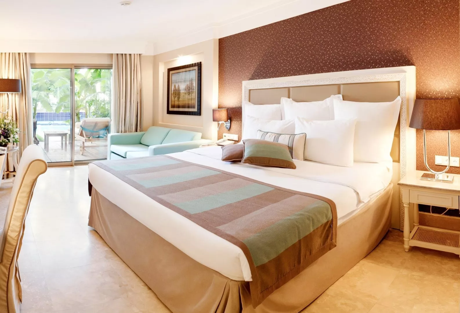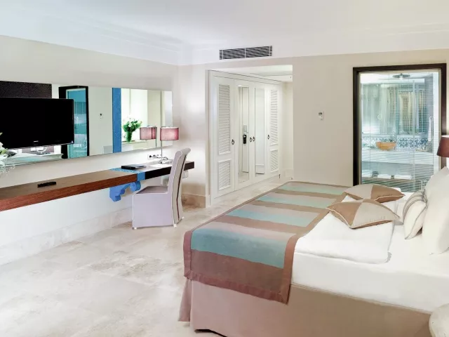 Dvojlôžkové izby sú vybavené klimatizáciou, telefónom, TV/sat., kúpeľňou s WC, minibarom, setom na prípravu kávy a čaju, trezorom a balkónom alebo terasou. K dispozícii sú aj rôzne typy izieb, medzi ktorými sú aj suit a rodinné suity.