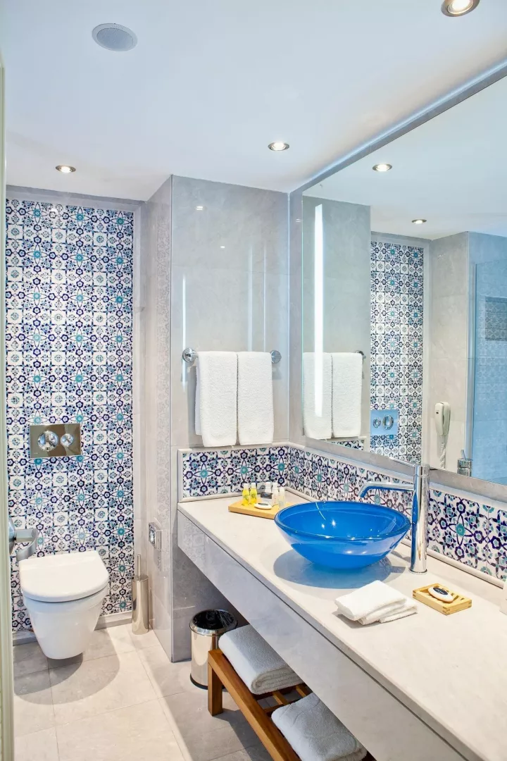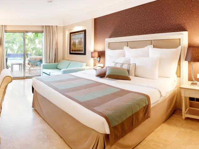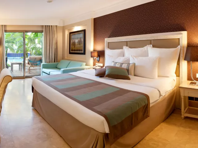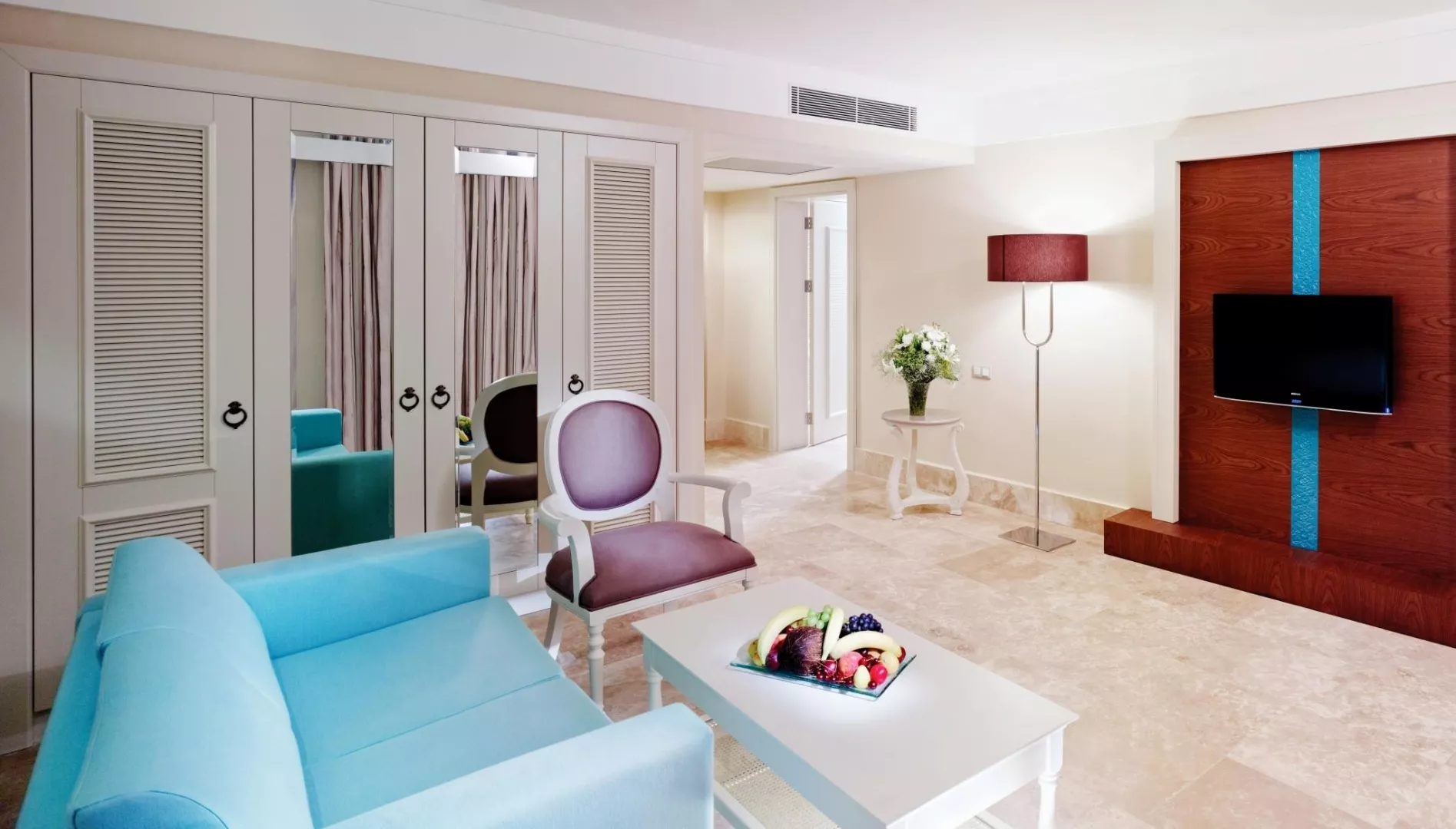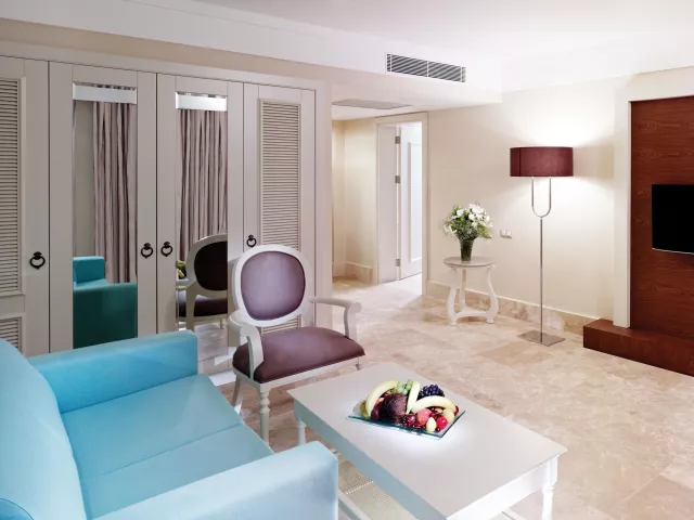 Dvojlôžkové izby sú vybavené klimatizáciou, telefónom, TV/sat., kúpeľňou s WC, minibarom, setom na prípravu kávy a čaju, trezorom a balkónom alebo terasou. K dispozícii sú aj rôzne typy izieb, medzi ktorými sú aj suit a rodinné suity.