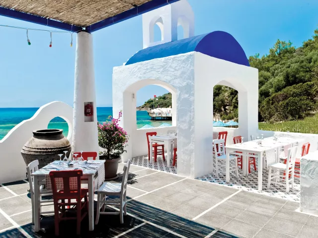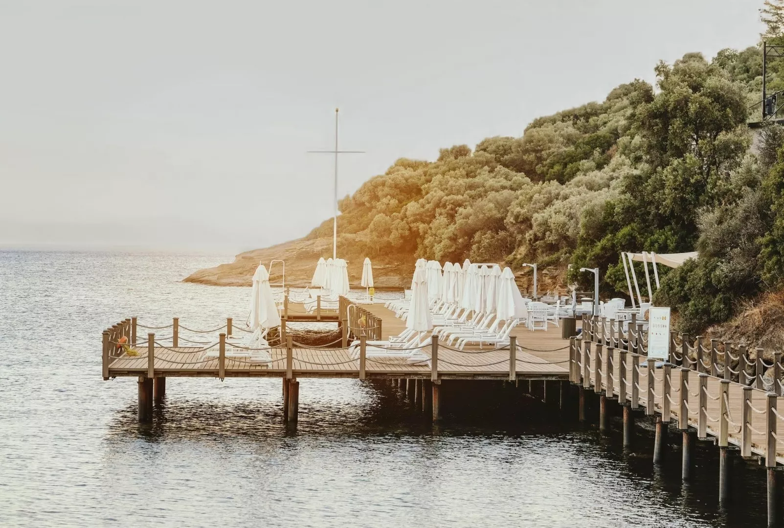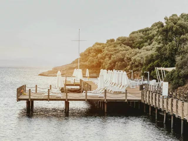 Hotel má súkromnú piesočnatú pláž s dreveným mólom, kde sú dostupné bezplatné ležadlá, slnečníky a osušky.