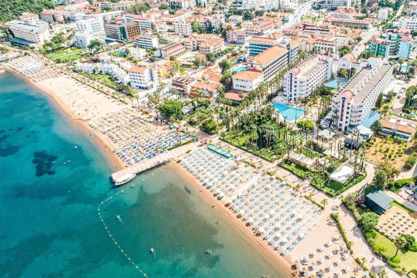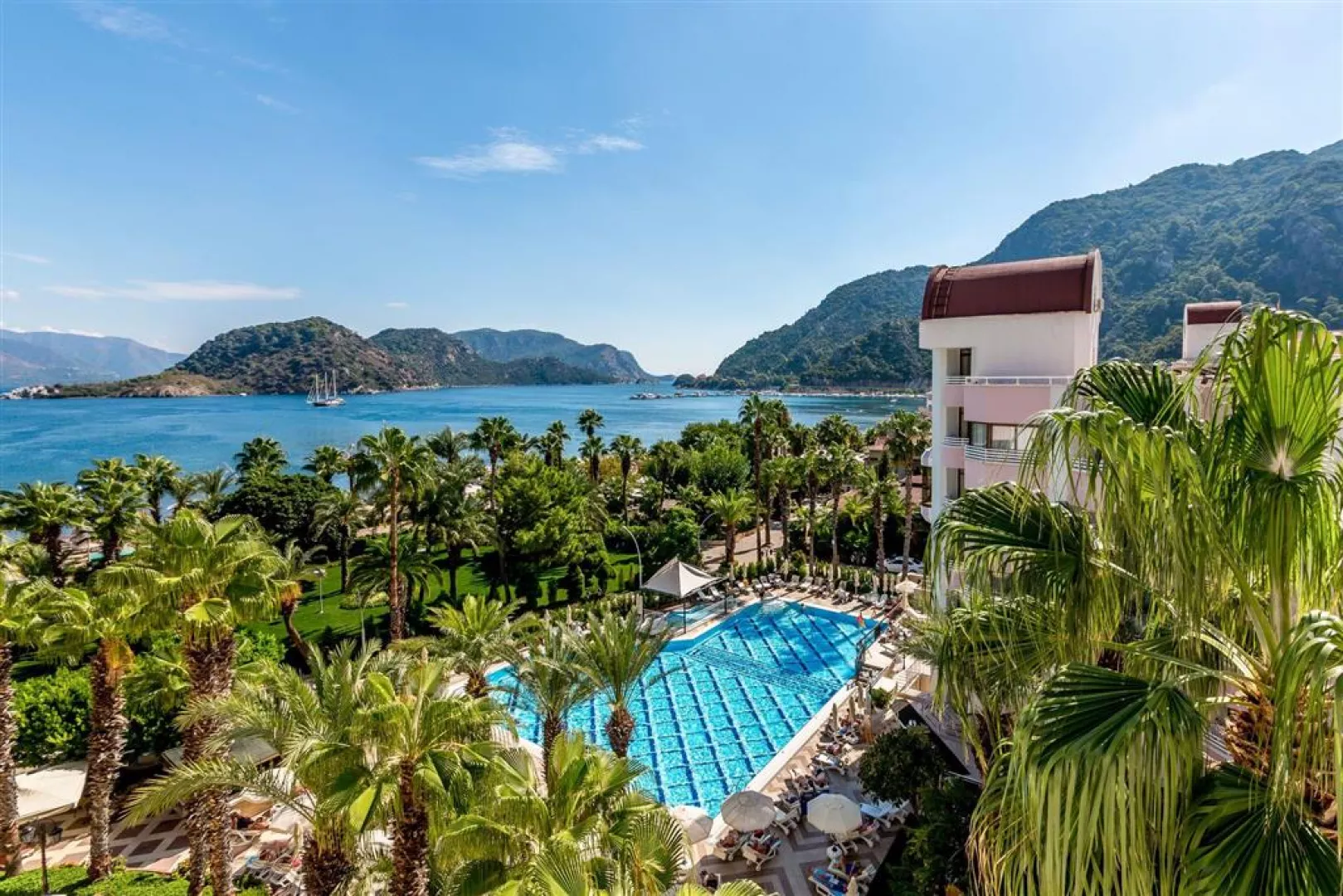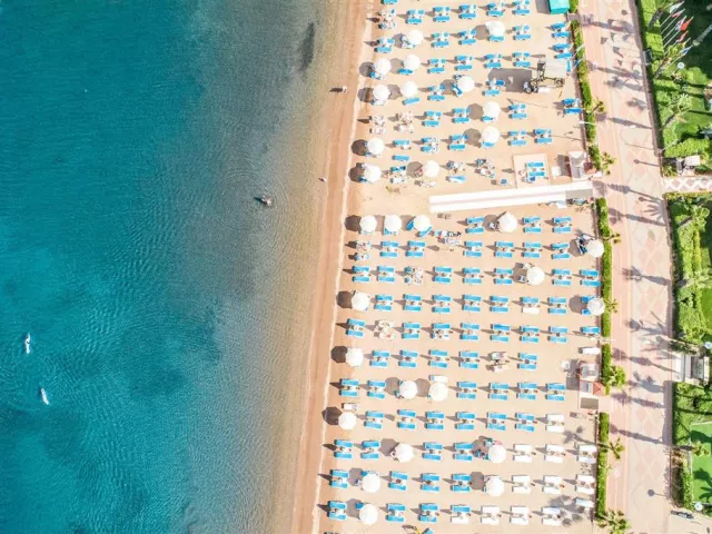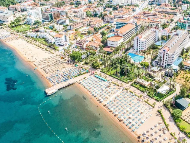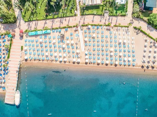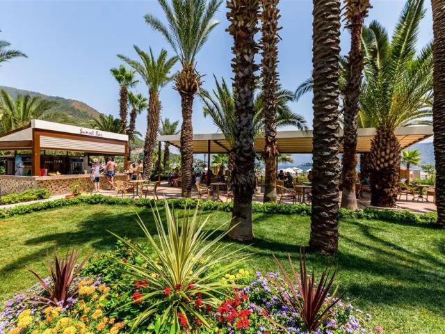 Hotel leží v udržiavanej palmovej záhrade priamo pri pláži, približne 200 m od centra Icmeler, asi 7 km od Marmarisu a približne 110 km od letiska. Autobusová zastávka pre miestnu dopravu sa nachádza 100 m od hotela.