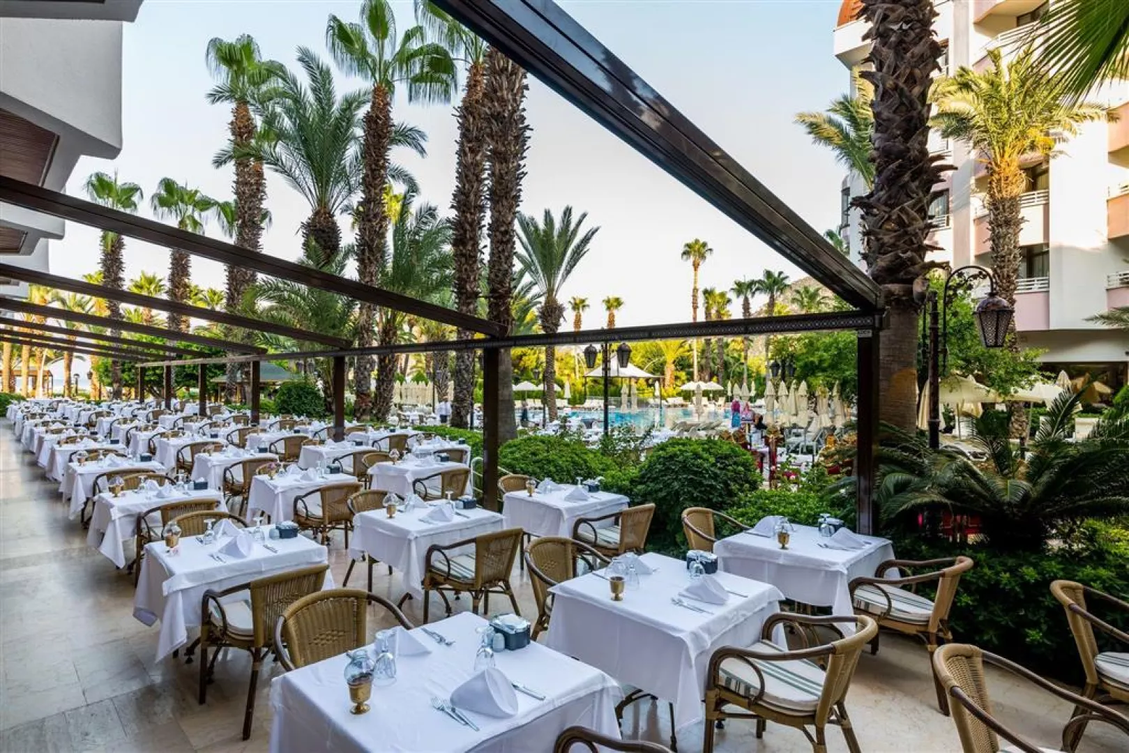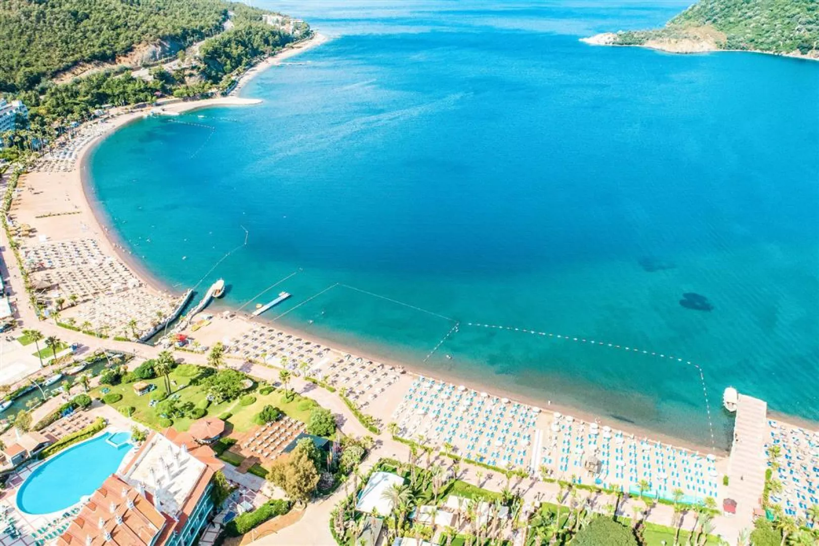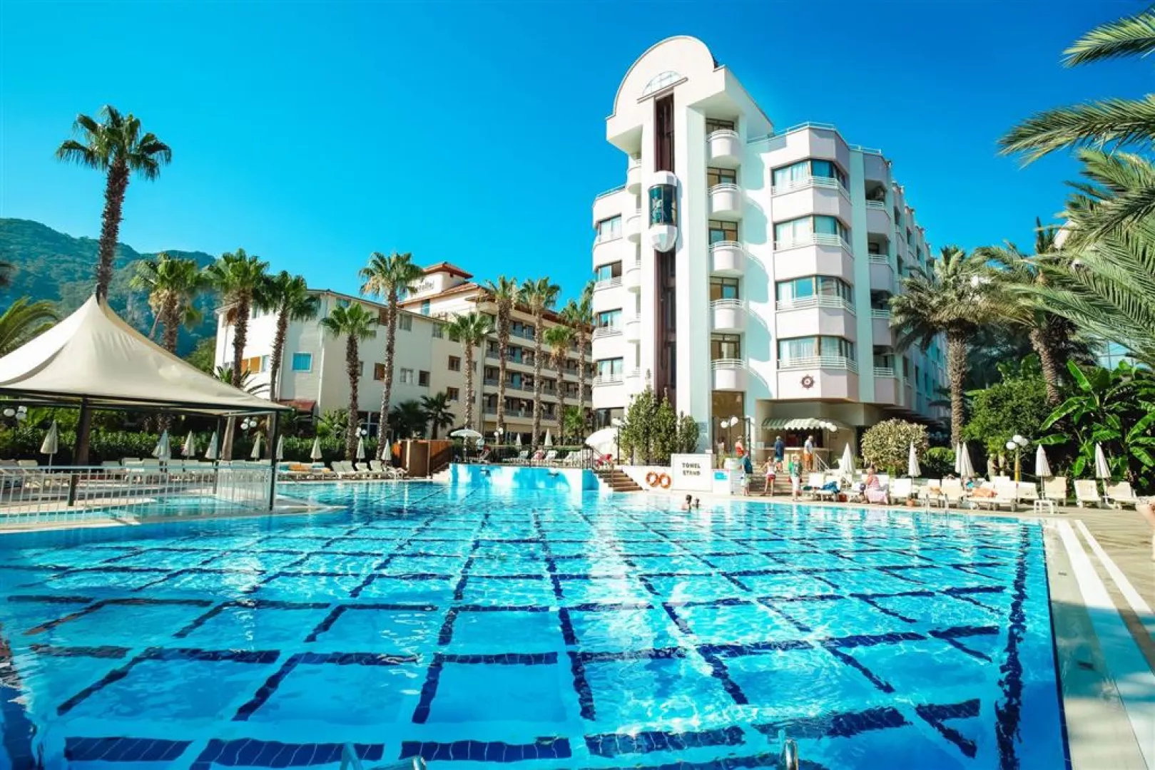 Hotel leží v udržiavanej palmovej záhrade priamo pri pláži, približne 200 m od centra Icmeler, asi 7 km od Marmarisu a približne 110 km od letiska. Autobusová zastávka pre miestnu dopravu sa nachádza 100 m od hotela.