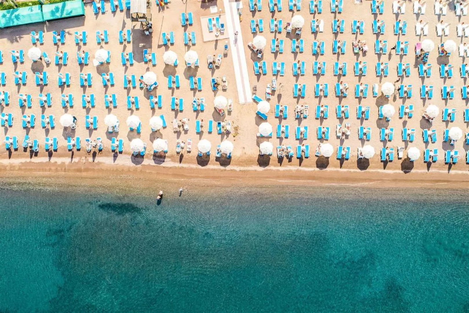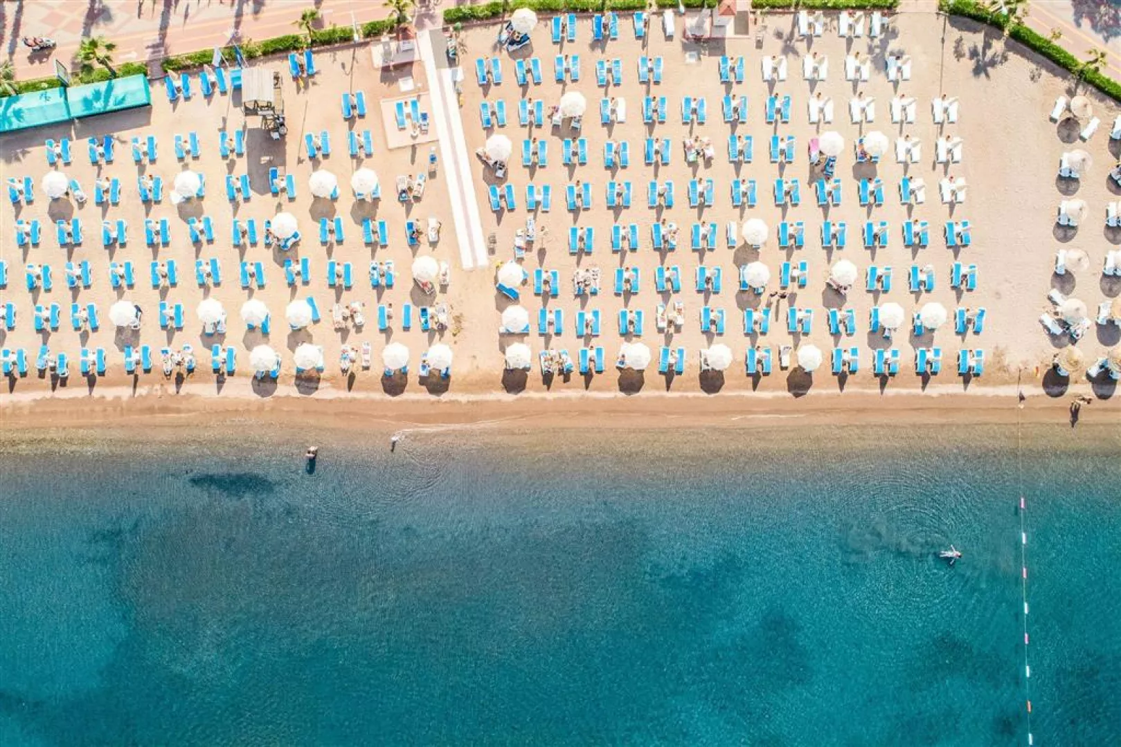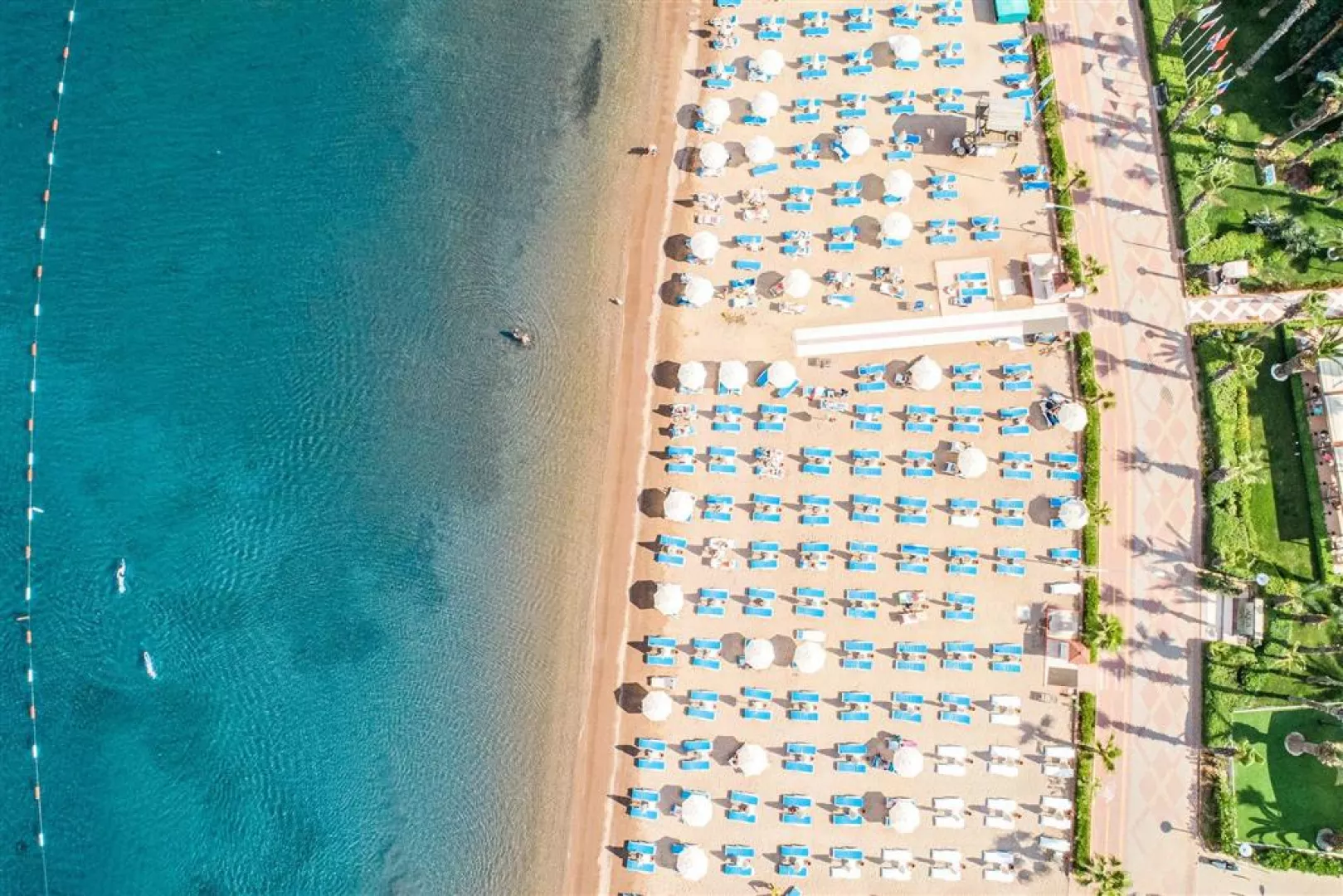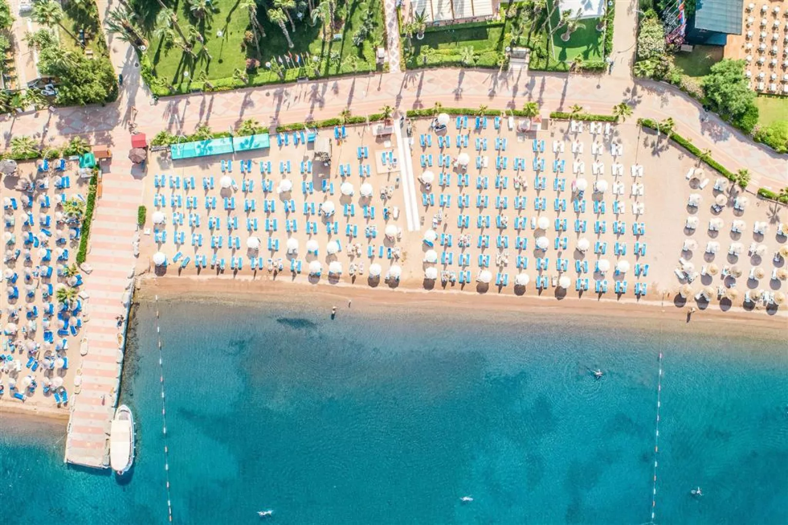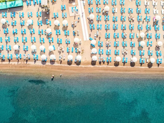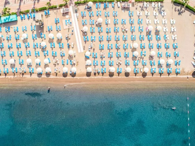 Hotelová piesočná pláž s pozvoľným vstupom do mora, ocenená Modrou vlajkou, leží priamo pri hoteli. Slnečníky, lehátka a osušky sú k dispozícii bez poplatku.