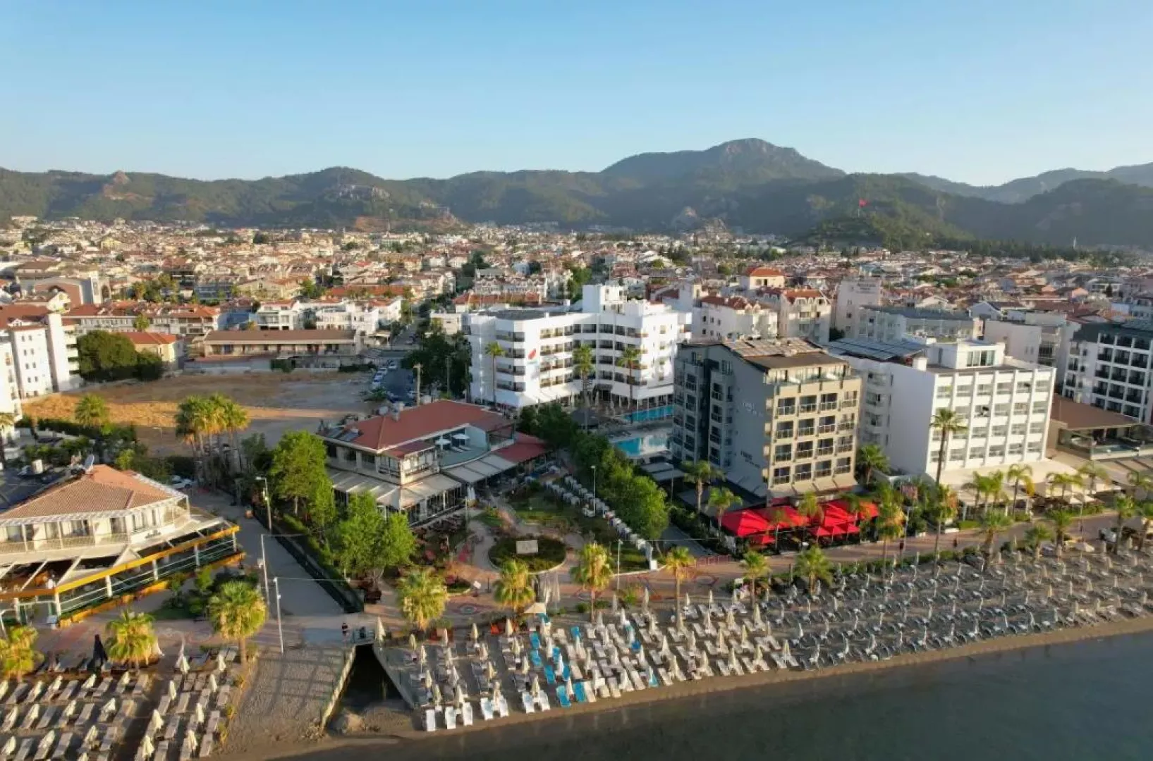 Hawaii Hotel Marmaris sa nachádza len 1 km od centra mesta Marmaris a 30 m od súkromnej piesočnatej pláže, pričom najbližšie medzinárodné letisko je v 90 km vzdialenom Dalaman. Nákupné možnosti sú dostupné v blízkosti hotela.