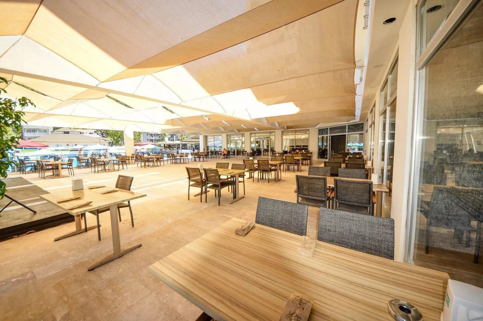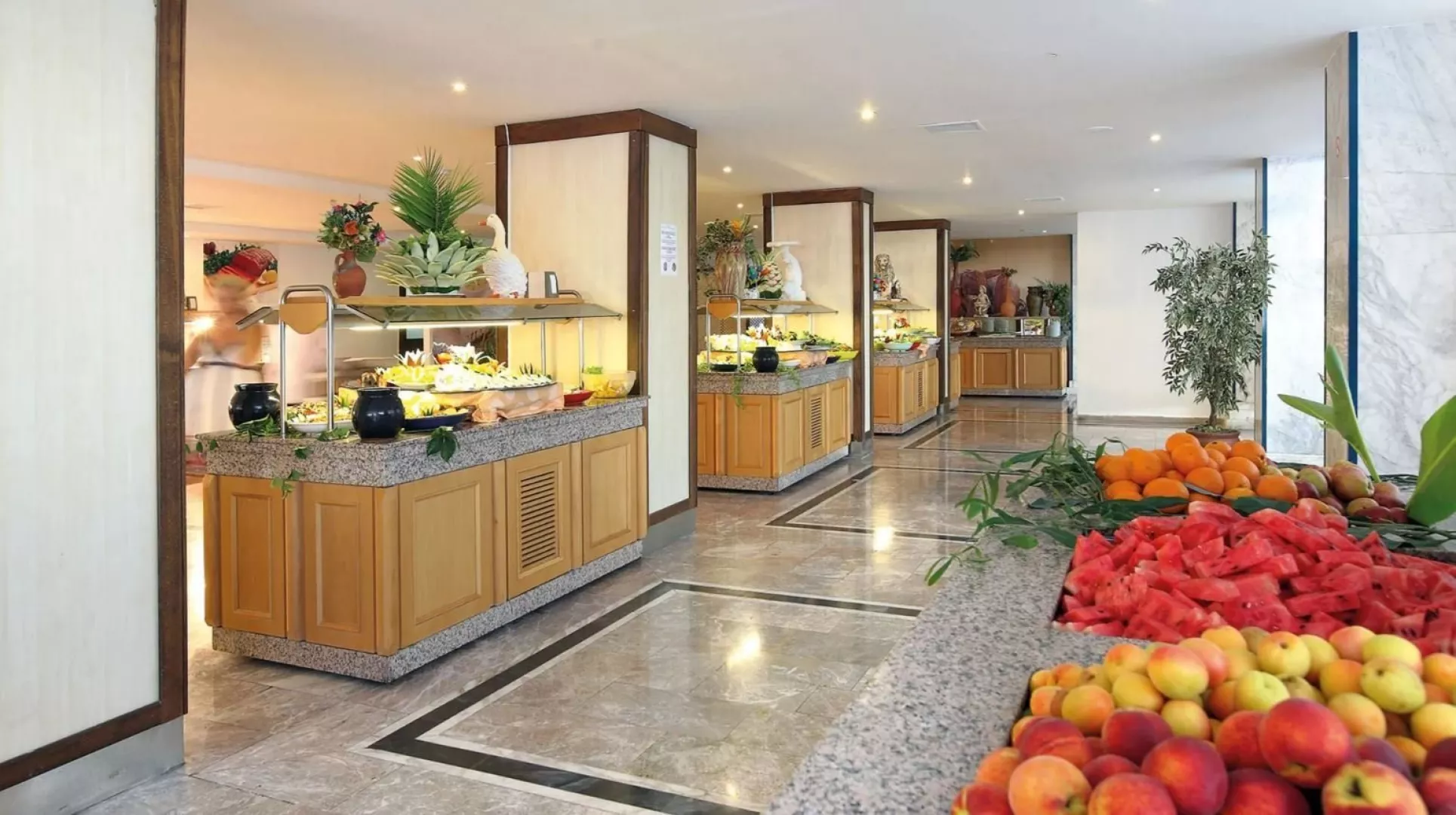 Hotel ponúka stravovanie formou all inclusive do 23:00. Ráno sa podávajú raňajky od 7:30 do 9:30, následne je k dispozícii neskorá raňajky do 10:00. Obed prebieha od 12:30 do 14:00 a večera formou bufetu od 19:30 do 21:00. Občerstvenie je k dispozícii vo vyhradenom bare od 14:00 do 16:00. Nealkoholické a miestne alkoholické nápoje sú dostupné v určených baroch od 10:00 do 23:00, pričom je potrebné nosiť pásky all inclusive.