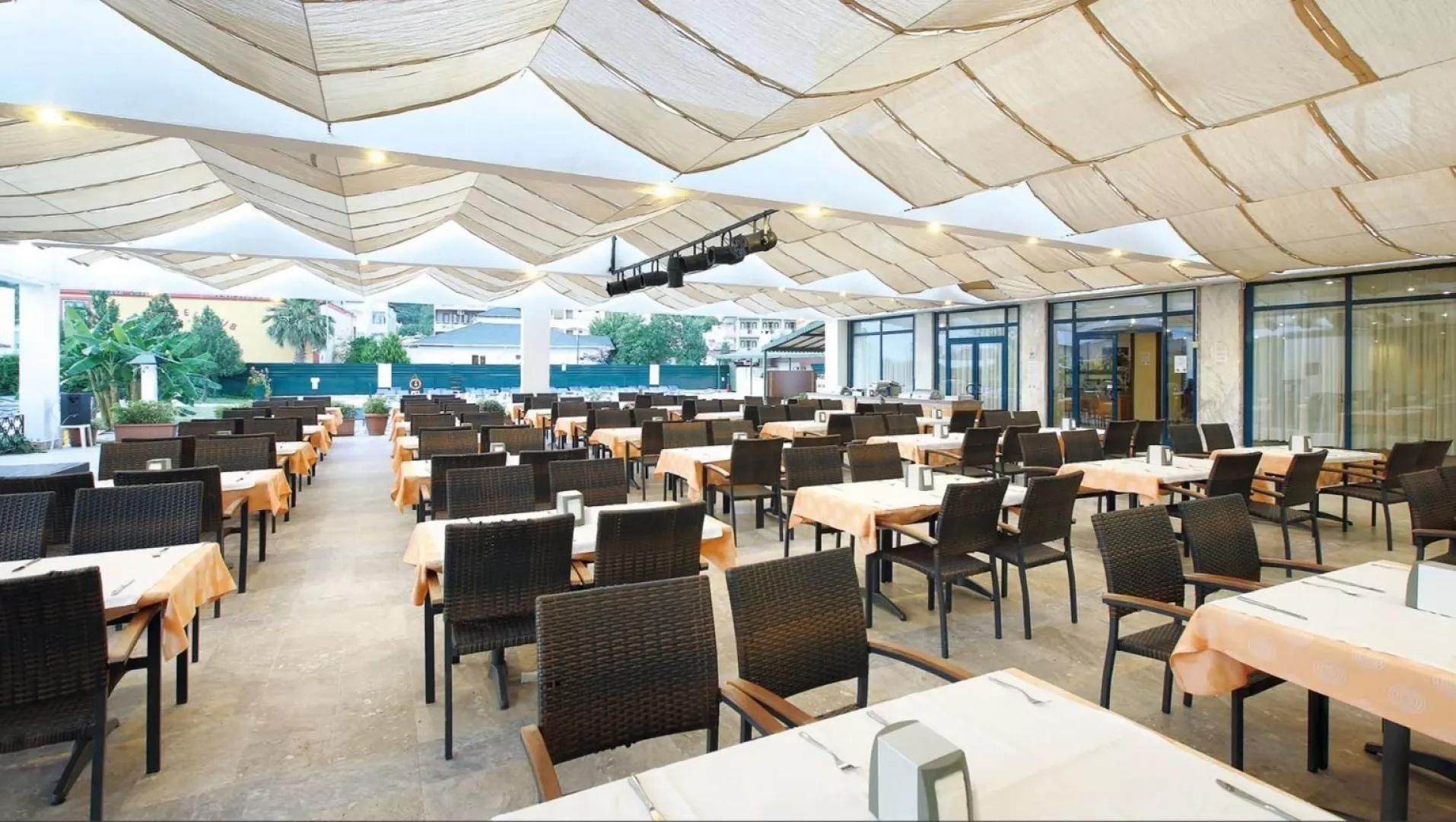Hotel je čiastočne zrekonštruovaný a ponúka 169 izieb rozložených v dvoch budovách s 6 poschodiami. K dispozícii sú dva výťahy a recepcia otvorená 24 hodín denne. Stravovanie zabezpečuje bufetová reštaurácia a dva bary – v lobby a pri bazéne. Medzi ďalšie zariadenia patrí vonkajší bazén, šmykľavky a detský bazénik so slnečníkmi, ležadlami a matracmi. Na recepcii je možné využiť trezor a bezplatné WiFi v spoločenských priestoroch. Za príplatok sú k dispozícii služby ako room service, lekár na zavolanie a mini market. Hotel akceptuje kreditné karty Visa a MasterCard.