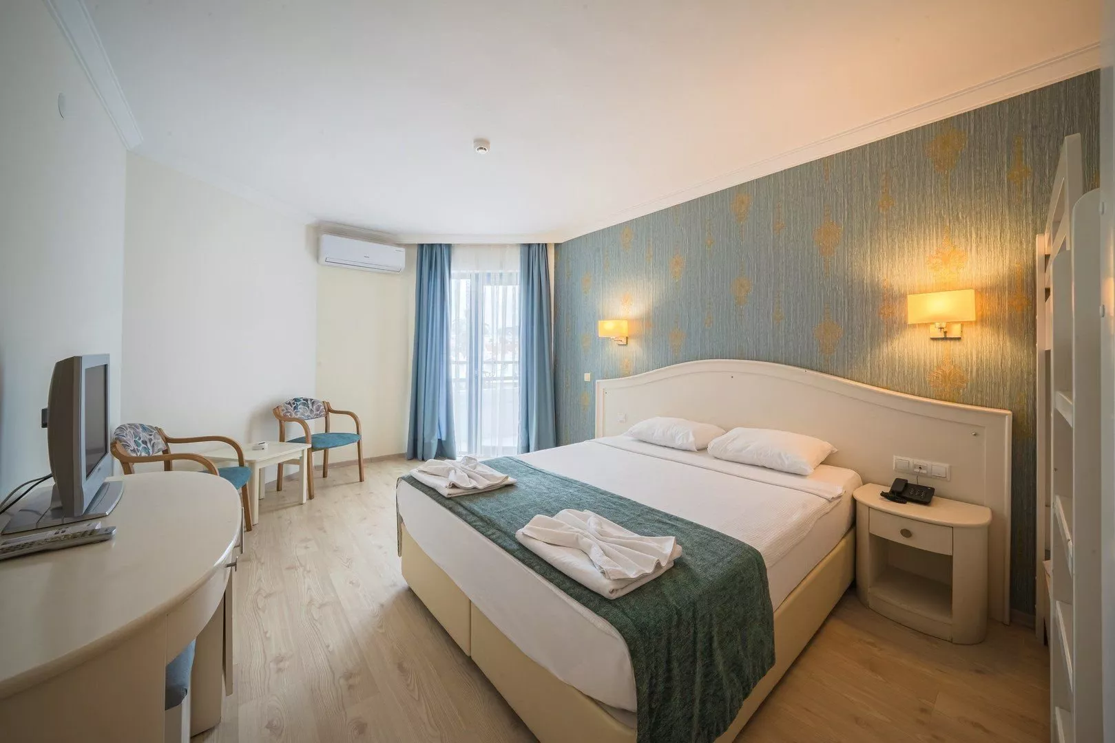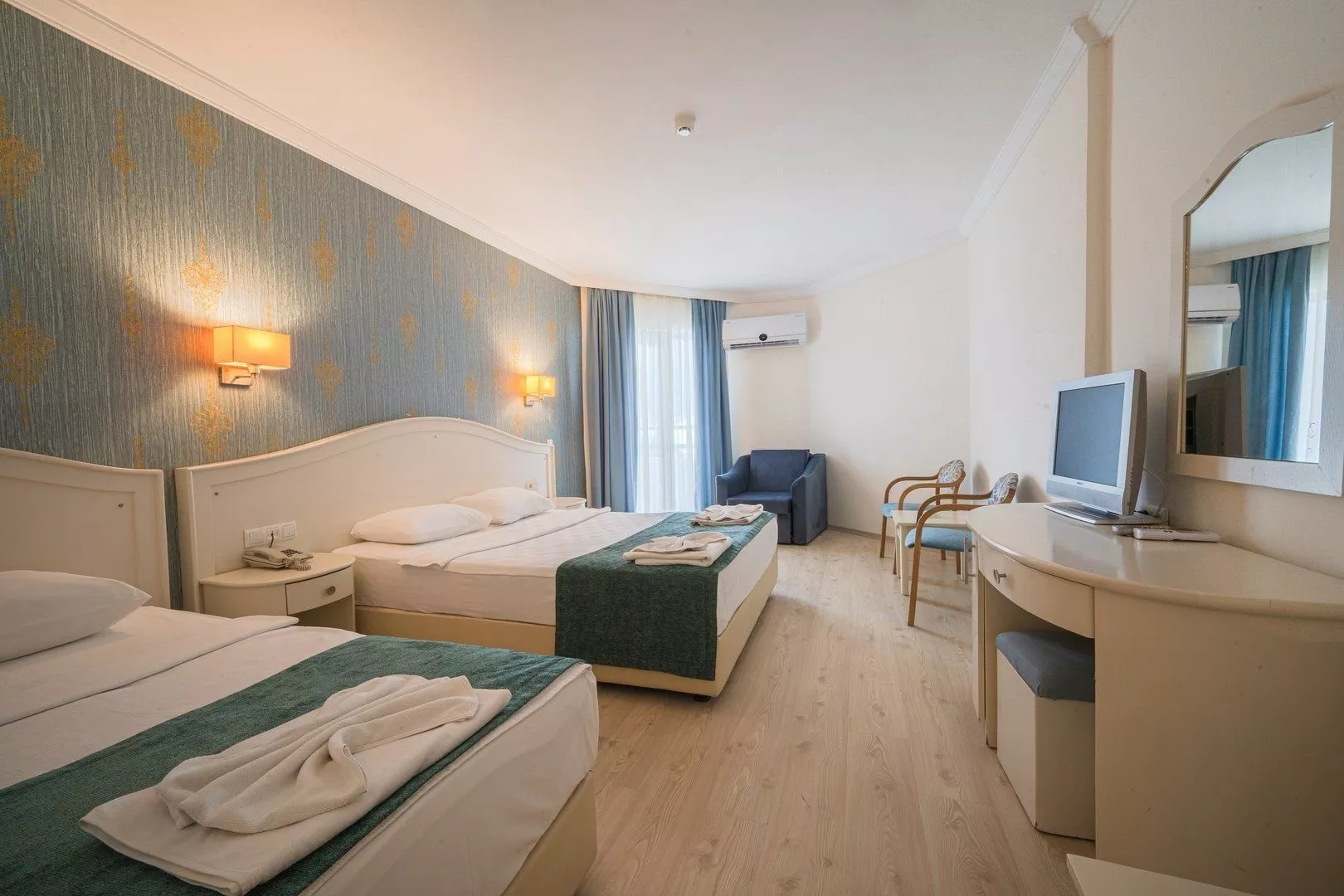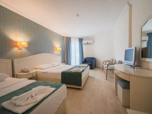 Izby sú vybavené dvojlôžkovými posteľami s možnosťou prístelky pre dospelú osobu alebo dvoch detí. Každá izba má cca 20 m2, individuálne ovládateľnú klimatizáciu, kúpeľňu (so sprchou, toaletou a fénom), satelitnú TV, telefón a minibar, ktorý je denne dopĺňaný vodou. Trezor je k dispozícii za poplatok a balkón možno zabezpečiť na požiadanie a za príplatok. K dispozícii sú aj jednolôžkové izby.