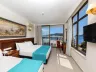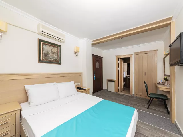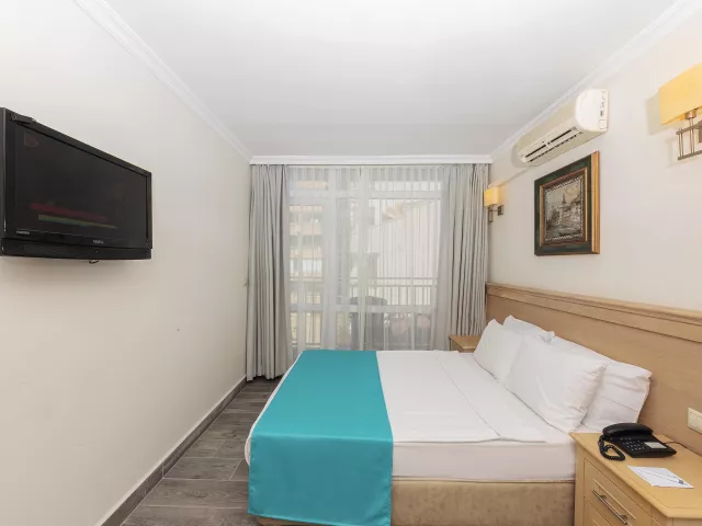 Dvojlôžková izba je vybavená kúpeľňou/WC so sušičom vlasov, klimatizáciou, televízorom, telefónom a minibarom (naplneným vodou pri príchode). K dispozícii je aj bezplatné Wi-Fi, trezor (za poplatok) a balkón alebo terasa. Ostatné typy izieb zahŕňajú bočný výhľad na more a Economy izbu s menej výhodnou polohou.