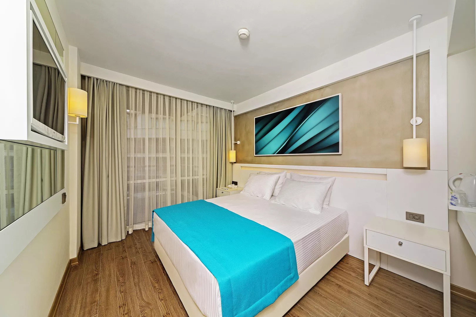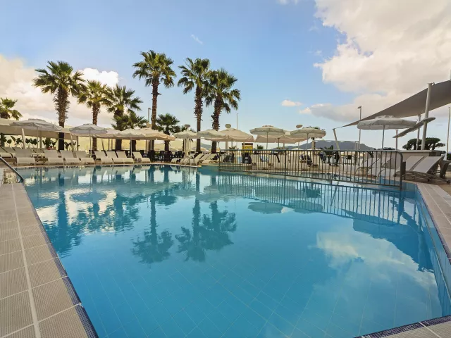Priamo pri hoteli sa nachádza piesočnatá pláž s pozvoľným vstupom do mora, ocenená modrou vlajkou. K dispozícii sú ležadlá, slnečníky a osušky zdarma. V areáli sú dva vonkajšie bazény a vnútorný bazén s vírivkami.