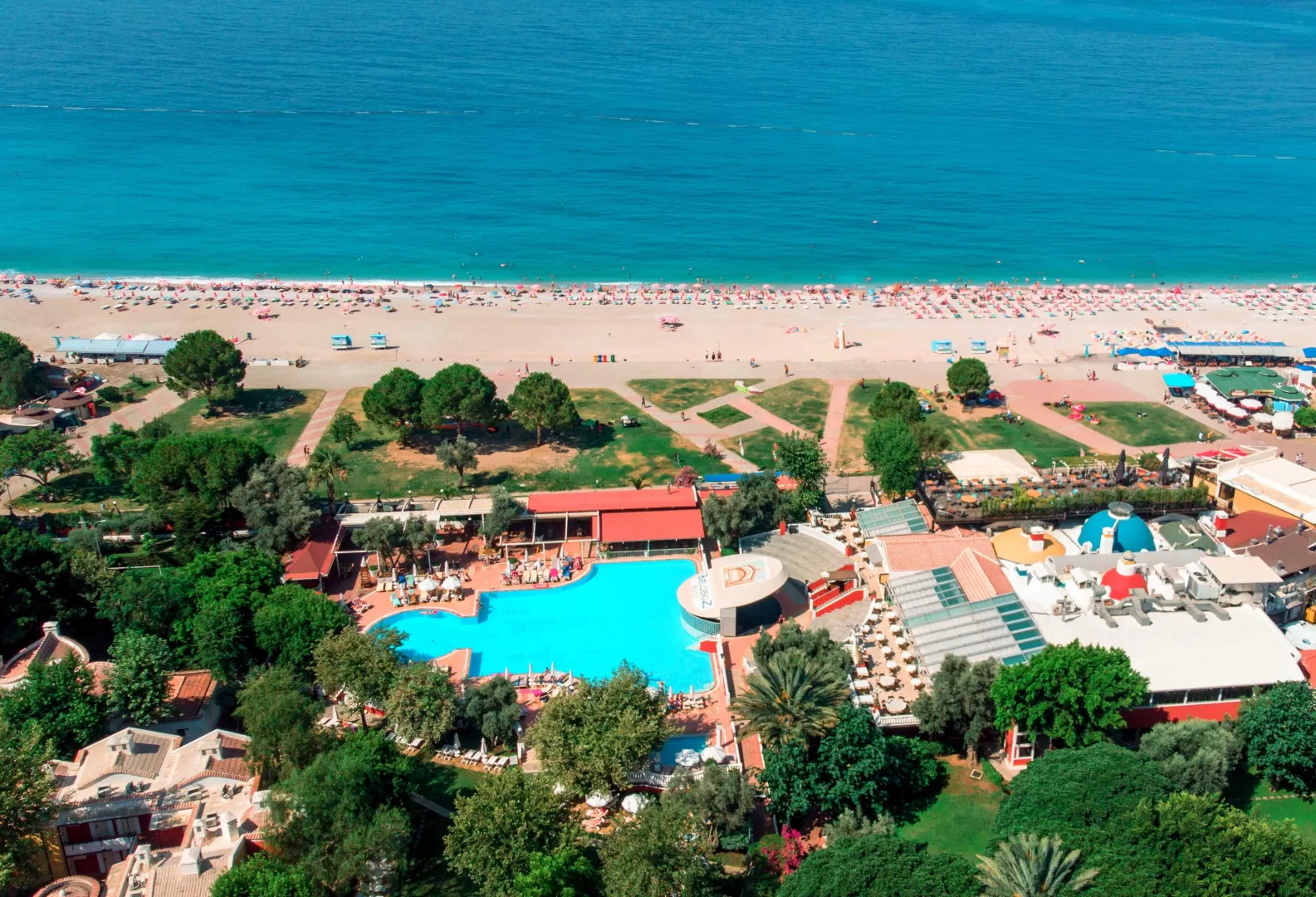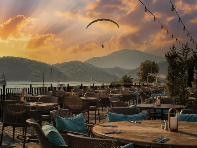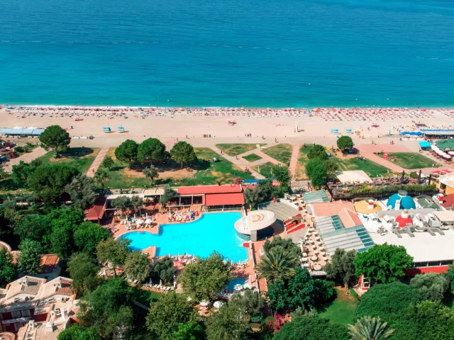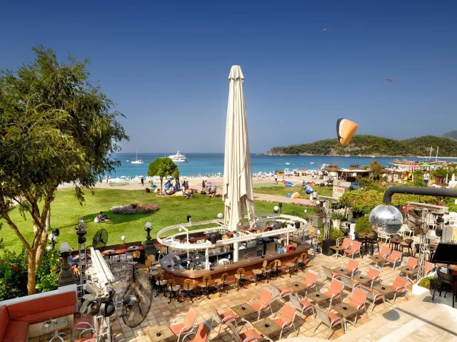 Hotel sa nachádza pri najznámejšej širokej pláži v Turecku - Modrej lagúne, v letovisku Ölüdeniz, kde sa more stretáva s horami. Nad hotelom sa týči známa hora Babadag, ku ktorej vedie lanovka. Centrum mesta Ölüdeniz je vzdialené cca 4 km, centrum mesta Fethiye 13 km, a medzinárodné letisko Dalaman sa nachádza 60 km od hotela.